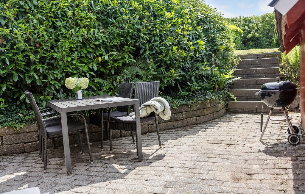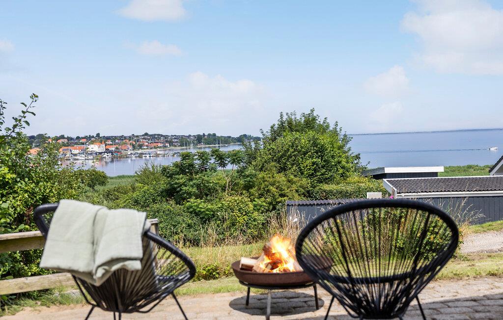 På solrige dage inviterer terrassen jer til at nyde morgenmaden udendørs. Lad blikket vandre over havet, tænd grillen efter en svømmetur eller snak omkring bålstedet med et glas vin.