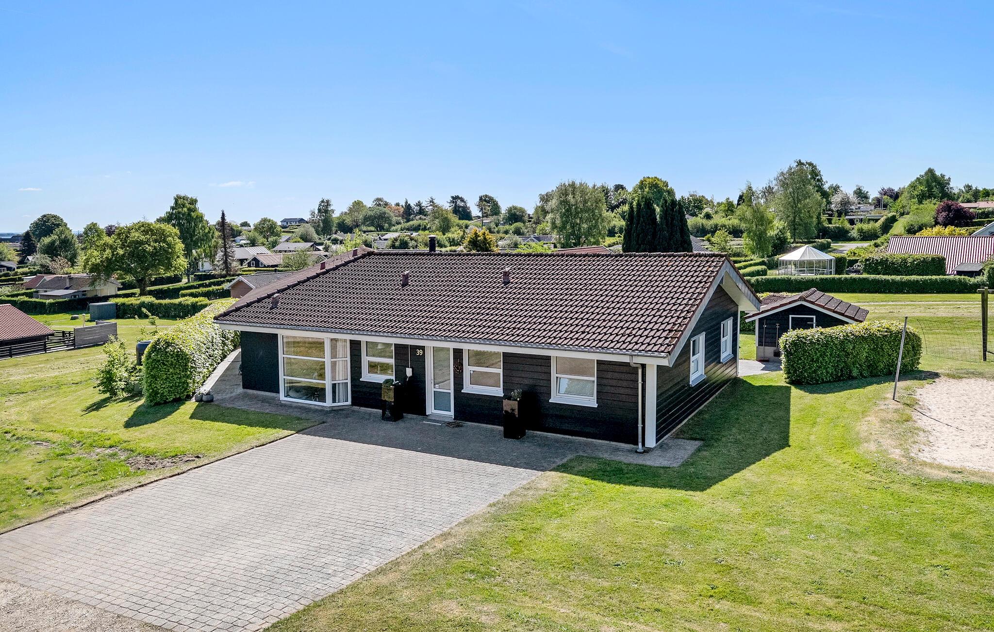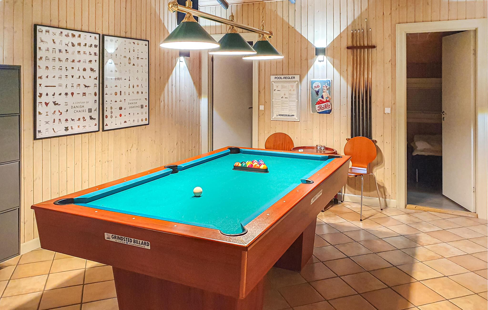 Dette rummelige feriehus, ikke langt fra den nærmeste strand ved Lillebælt, kombinerer stilfuld indretning med de bedste betingelser for et vellykket ophold. Den tilbyder plads nok til en stor familie og skaber en hyggelig boligatmosfære takket være dens åbne planløsning. Opholdsstuen kombinerer køkken, spiseplads og sofahjørne og skaber et hyggeligt mødested, hvor man kan tilbringe tid sammen. Rummelige vinduer giver masser af lys og udsigt over de grønne områder, oplagt til at koble af og slappe af. Husets spabad og sauna sørger for ekstra velvære, mens den indendørs pool lover sjov for alle aldre. Brug poolbordet til hyggestunder i aktivitetsrummet.