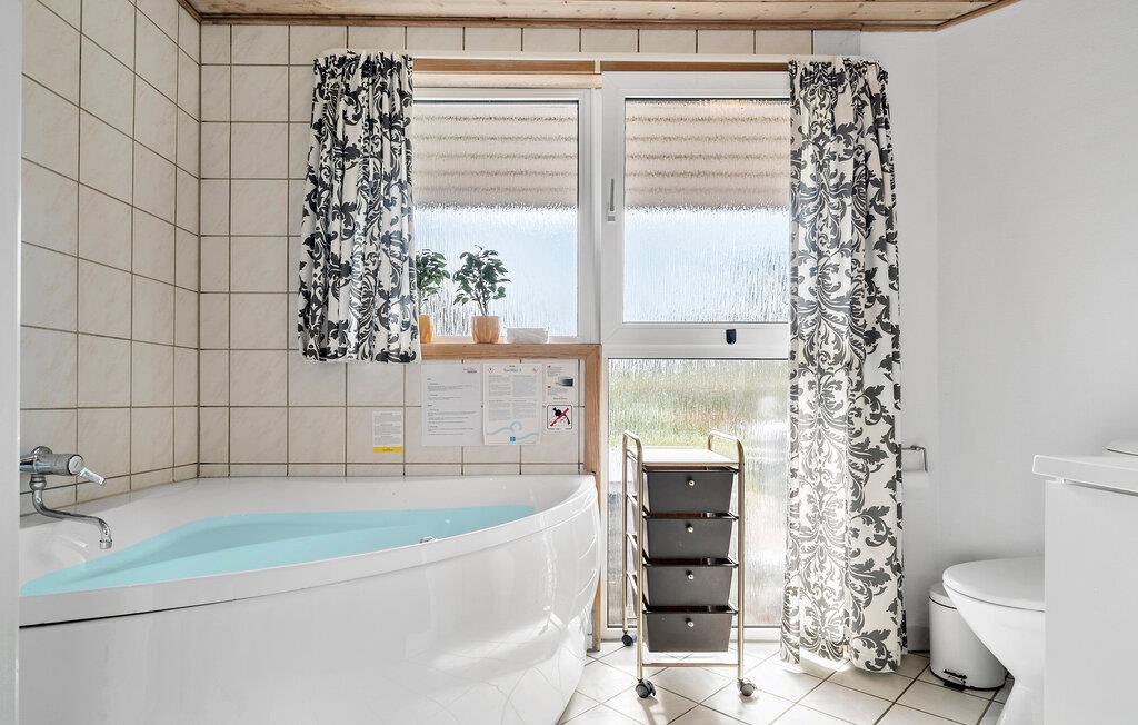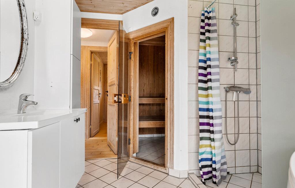 Udendørs inviterer den rummelige terrasse til afslapning, mens jeres børn kan lege og tumle i haven. Uanset om det er boldspil eller gemmeleg, byder den store have på masser af plads til udendørs aktiviteter. Til jeres egen afslapning står både spabad og sauna til rådighed i sommerhuset.