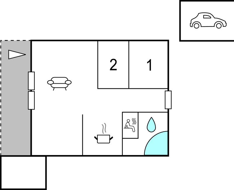 Alkove - 2 Sovepladser. (Sofa, madras eller lignende).