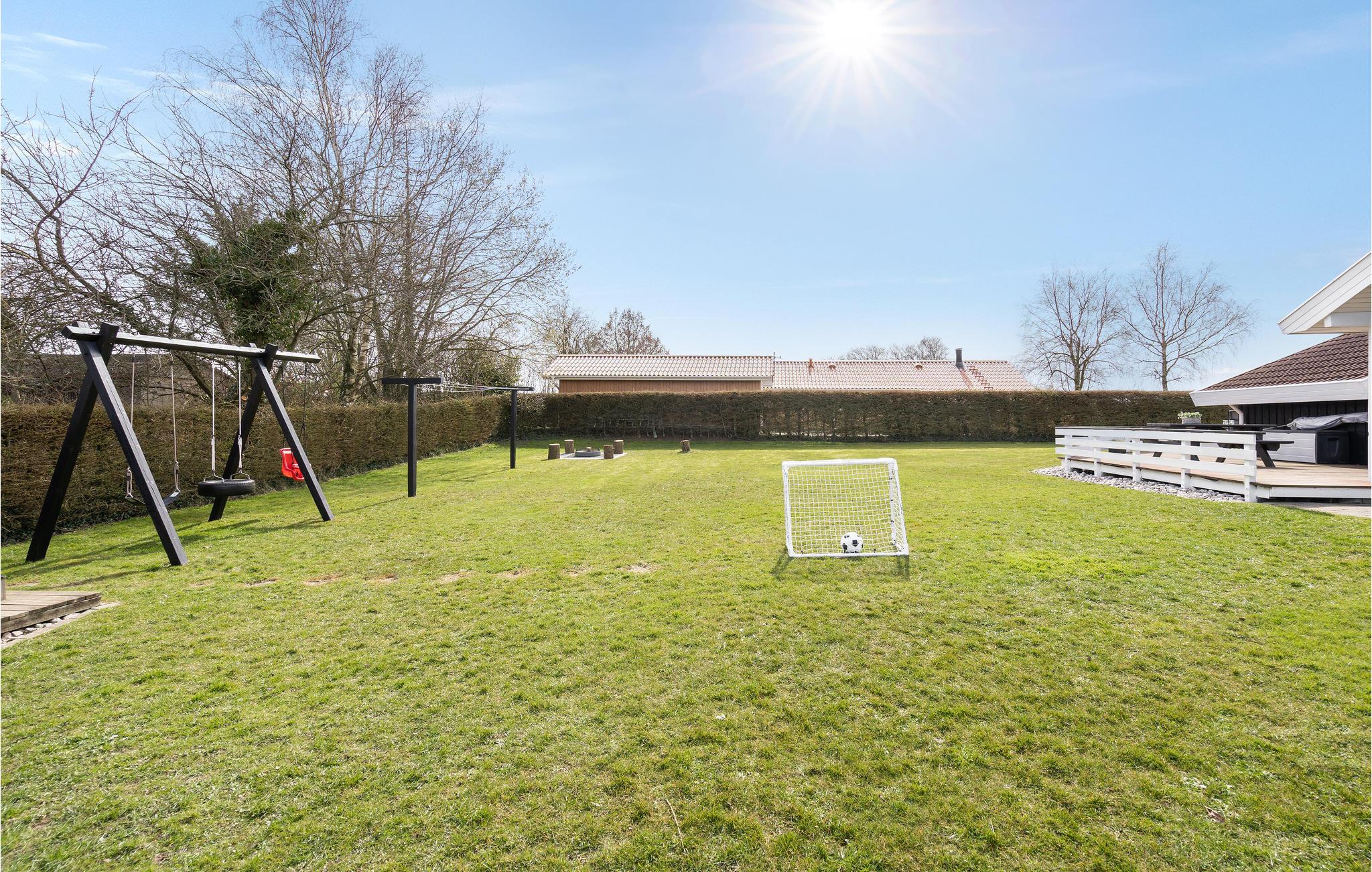 På den store havegrund er der god plads til at boltre sig for børnene ved gyngen og sandkassen. Hvis de skulle trænge til lidt afveksling, ligger der også en dejlig legeplads ca. 500 fra huset.