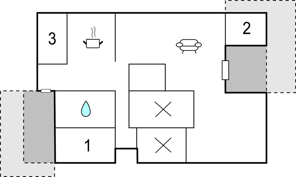 Bemærk: Huset kan nås via få trapper og er ikke velegnet til gangbesværede gæster. Køjesengene er kun 1,6 m lange og egner sig derfor kun til børn.