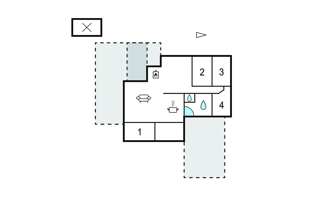 Badeværelse 4m2 (nr. 1) - WC. Varmt og koldt vand. Bruser