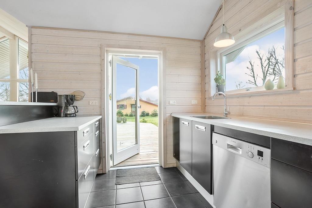 Sommerhus i Hejlsminde, Sydøstjylland, med plads til 6 voksne. Der er en hyggelig indretning med bl.a. brændeovn, og du finder desuden vaskemaskine, opvaskemaskine og tørretumbler i boligen.
