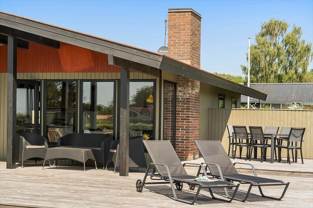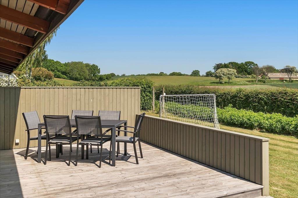 Sommerhuset ligger på en stor grund, der grænser op til åbne marker, så her er fred og ro til at nyde naturen. Fra terrassen kan du lade blikket vandre ud over landskabet og nyde den flotte udsigt til vandet. Den delvist overdækkede terrasse giver dig mulighed for at nyde de lange sommeraftener uanset vejret, og havemøblerne indbyder til afslapning med en kop kaffe eller et glas vin. Grunden giver masser af plads til leg og aktiviteter, så både børn og voksne kan nyde tiden udendørs. Måske har du lyst til at starte dagen med en frisk morgendukkert i Hejlsminde Bugt, der ligger inden for kort rækkevidde.