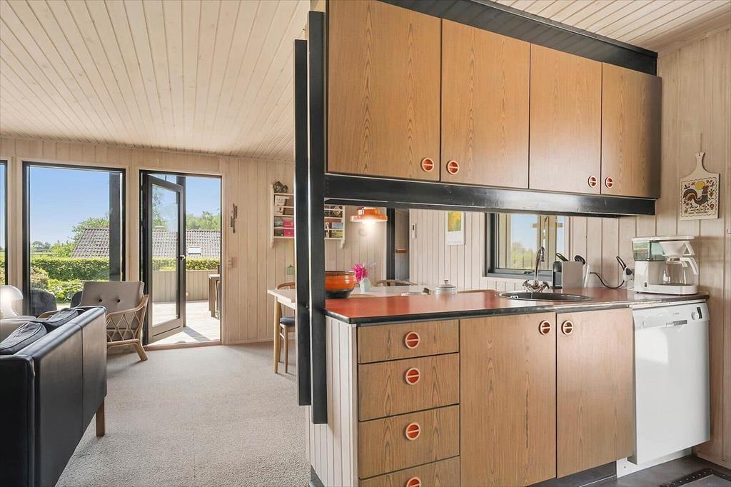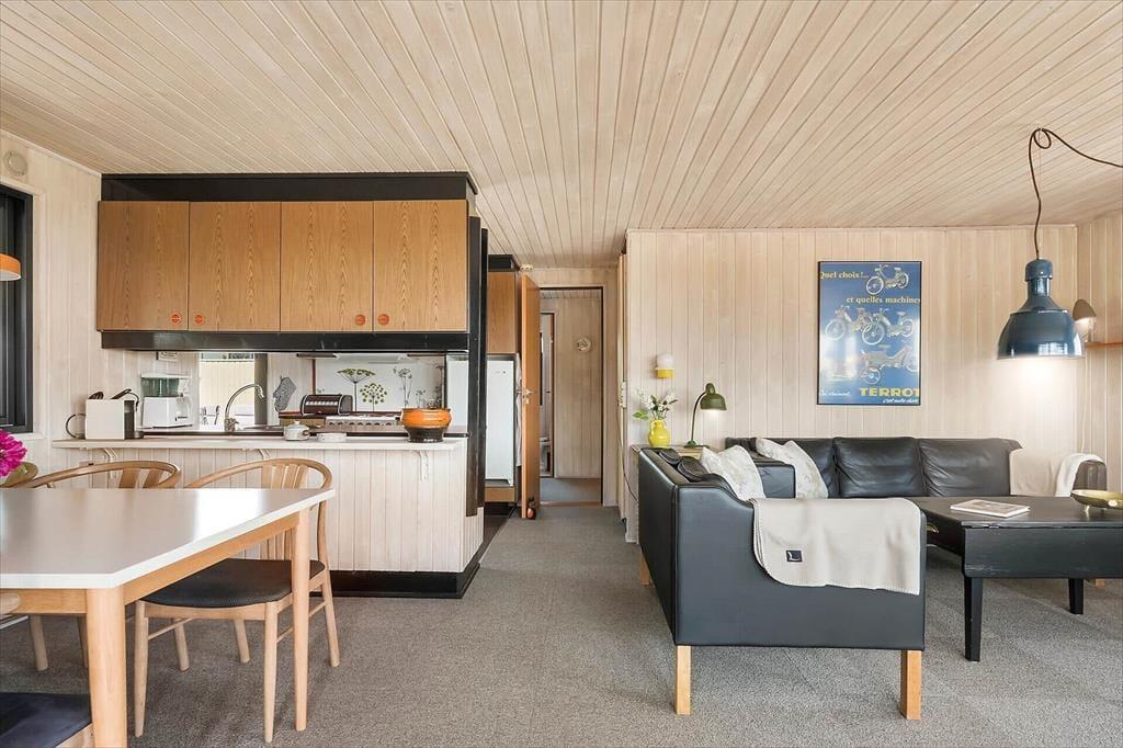Sommerhuset emmer af klassisk sommerhusstemning med sin autentiske og hyggelige indretning. De varme trævægge, de store vinduespartier og de nøje udvalgte detaljer skaber en lys og indbydende atmosfære. I opholdsrummet forenes stue, spiseplads og køkken i ét, hvilket skaber en hyggelig ramme for feriens mange stunder med god mad, brætspil og lange samtaler. Brændeovnen tilføjer ekstra varme og charme til de kølige aftener, hvor du kan synke ned i sofaen med en god bog.