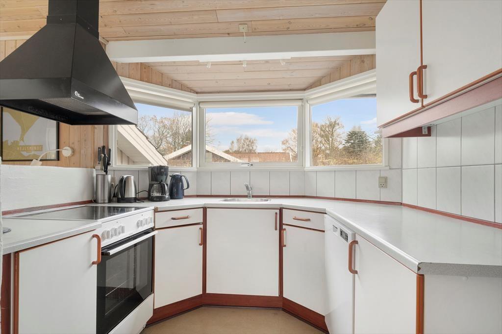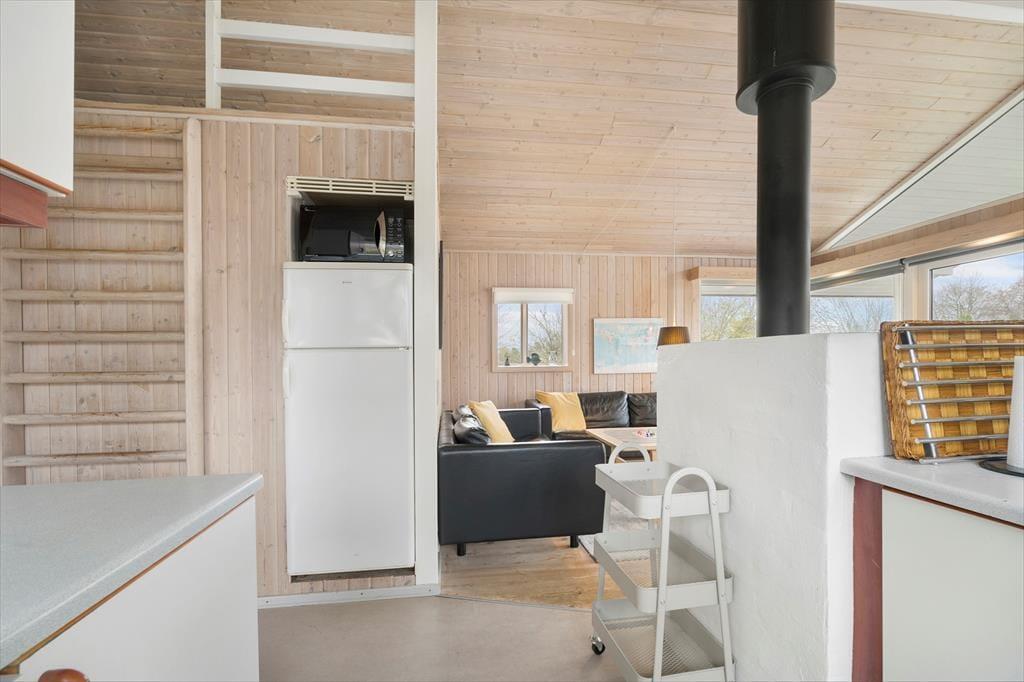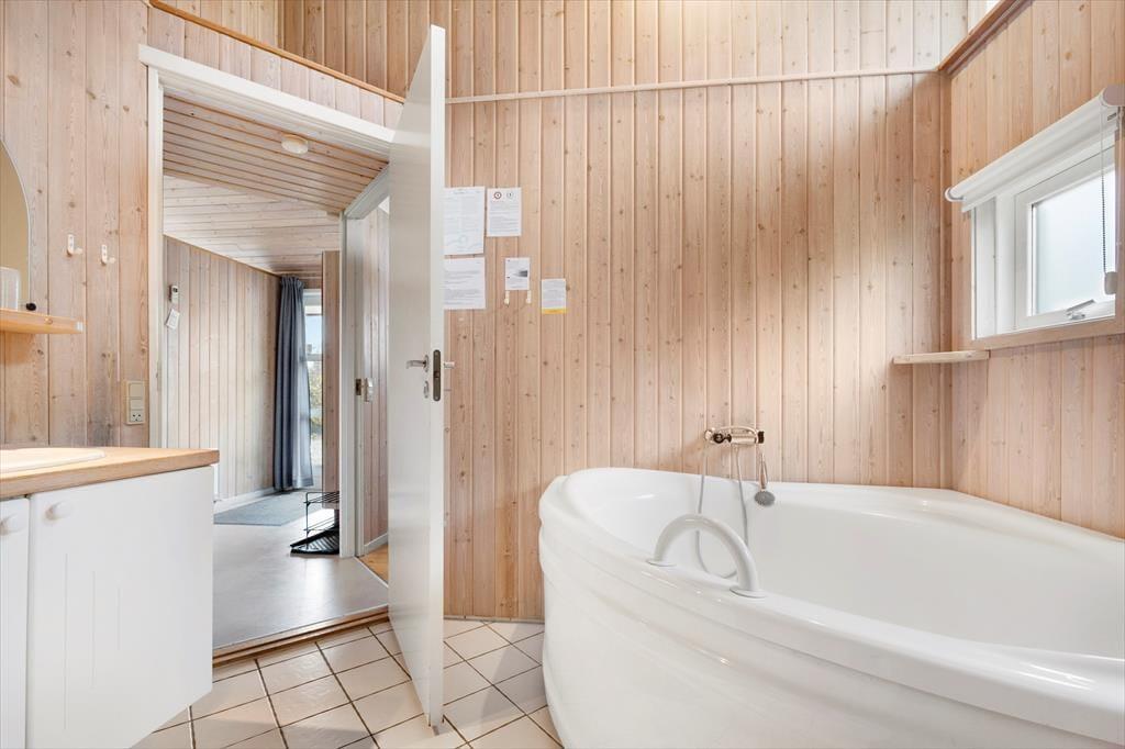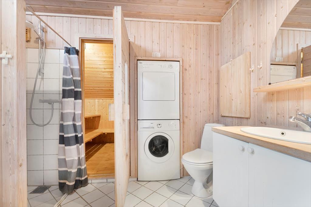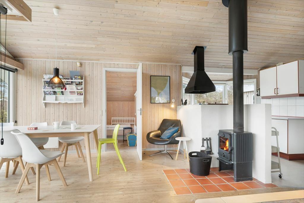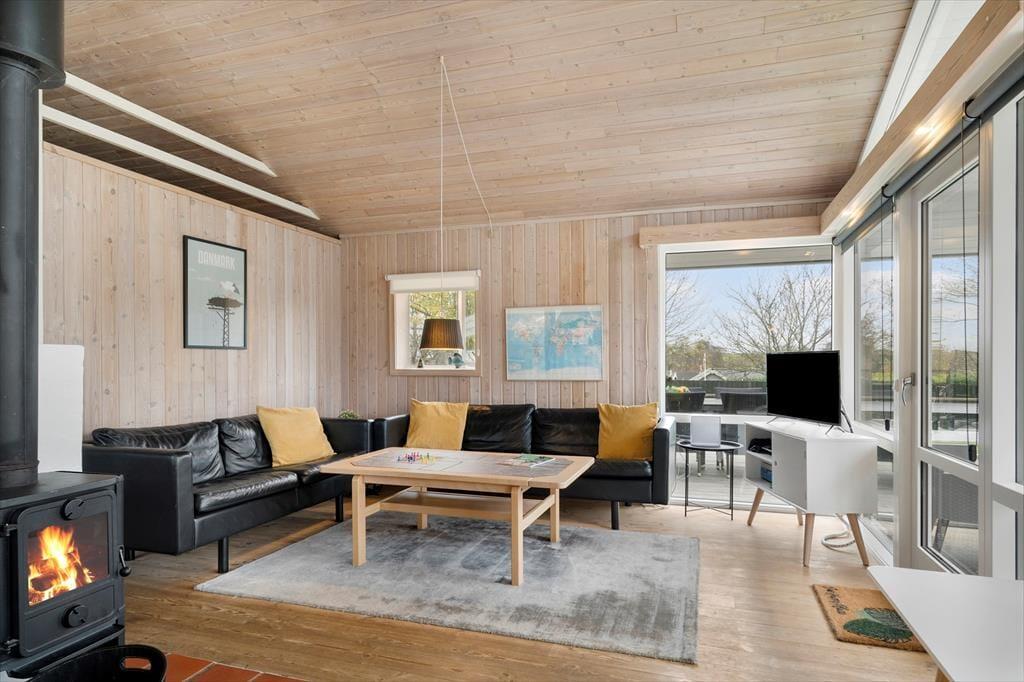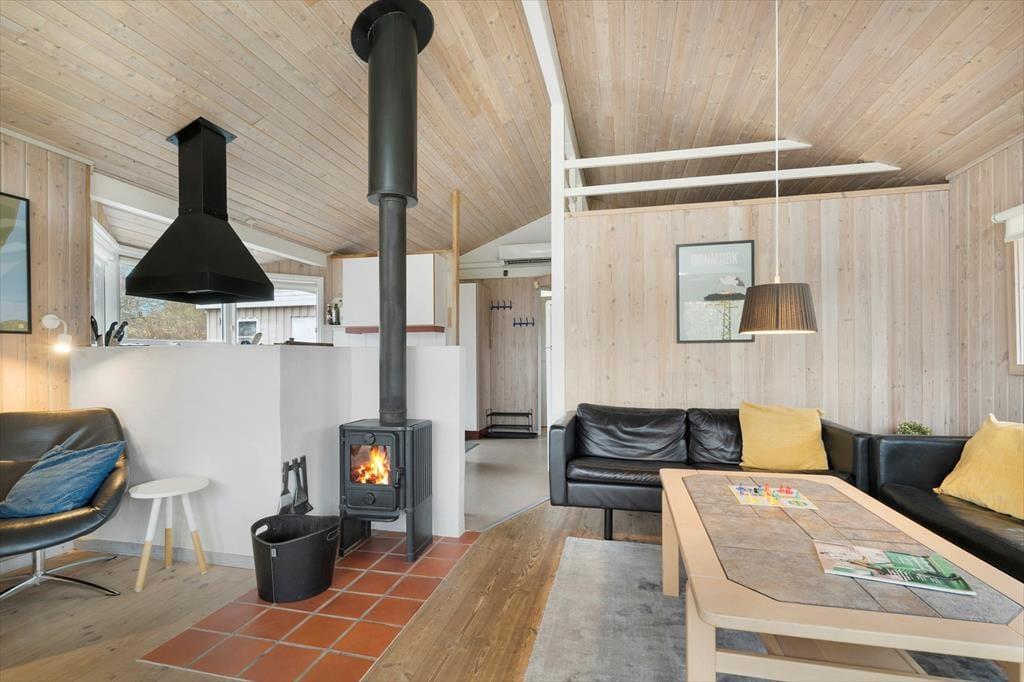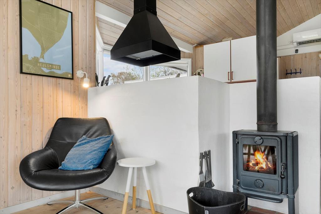 Indenfor mødes du af en lys og hyggelig atmosfære, hvor sommerhusets indretning indbyder til afslapning fra første øjeblik. Her er der tænkt på de små detaljer, som gør ferien ekstra behagelig, og rummene emmer af varme og feriestemning. I opholdsområdet kan du tænde op i brændeovnen og nyde den knitrende lyd, mens flammerne spreder varme og hygge på kølige aftener. Det er det oplagte sted at samles med en god bog, et spil kort eller en kop varm kakao efter en dag ved stranden. Badeværelset byder på ren forkælelse med både sauna og spa, hvor du kan lade hverdagens stress forsvinde og give dig selv tid til ro og velvære. Her kan du mærke varmen omslutte dig og lade tankerne flyde frit – en ægte feriefølelse, der gør det nemt at slappe helt af.