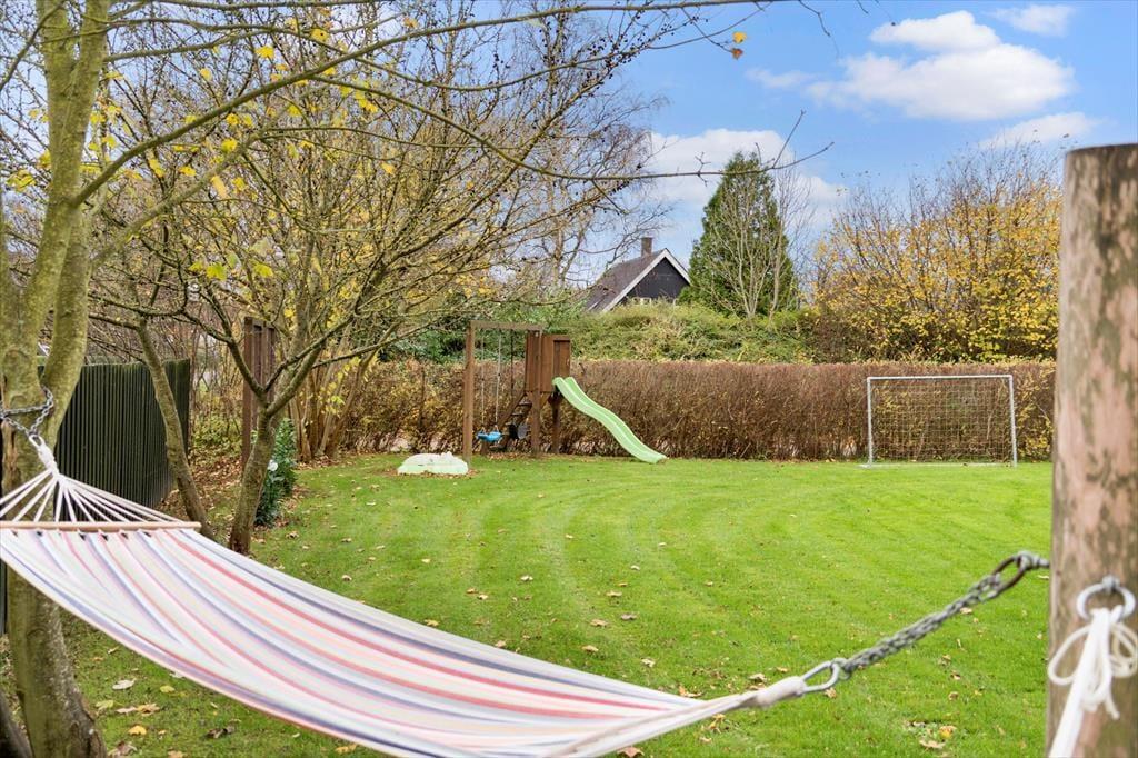 Når solen skinner, er det oplagt at rykke ferielivet udenfor. Sommerhuset ligger på en dejlig grund, hvor der er god plads til at nyde udelivet i rolige omgivelser. Start dagen med morgenkaffen under åben himmel, mens fuglene kvidrer i baggrunden, og planlæg dagens oplevelser i ro og mag. Terrassen indbyder til afslapning, lange frokoster og hyggelige grillaftener, hvor dagen kan rundes af i godt selskab. Den korte afstand til stranden gør det nemt at tage en spontan tur ned til vandet, hvor du kan mærke sandet mellem tæerne og tage en forfriskende dukkert i Hejlsminde Bugt. Her kan du nyde lange sommerdage med sol, strand og hav – eller blot gå en rolig tur langs kysten og lade blikket glide ud over vandet.