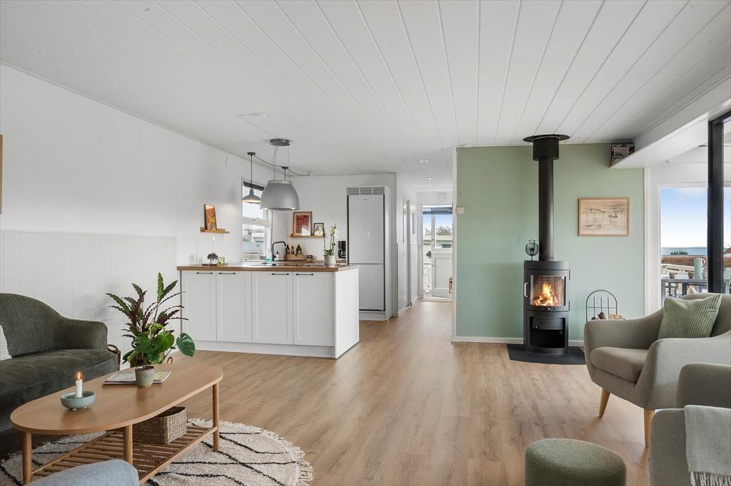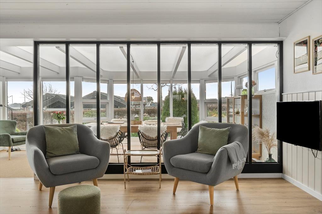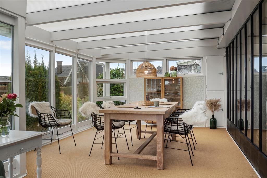 Når du træder ind i dette lyse sommerhus, mødes du straks af en indbydende atmosfære. Den store havestue er husets hjerte, og dens store vinduer fylder rummet med naturligt lys, hvilket skaber en varm og hyggelig stemning i resten af huset. Her kan du nyde udsigten til haven eller tilbringe rolige eftermiddage med en bog i hånden, mens lyset strømmer ind. I den åbne opholdsstue er der god plads til både afslapning og samvær, og det åbne køkken indbyder til hyggelige måltider sammen med familien. Det rummelige soveværelse har direkte adgang til haven, så du kan vågne op til lyden af fuglesang og gå en morgentur i den friske luft, lige når du står op. Hele huset er indrettet med komfort og ro i fokus, hvilket gør det nemt at koble af og nyde ferien.