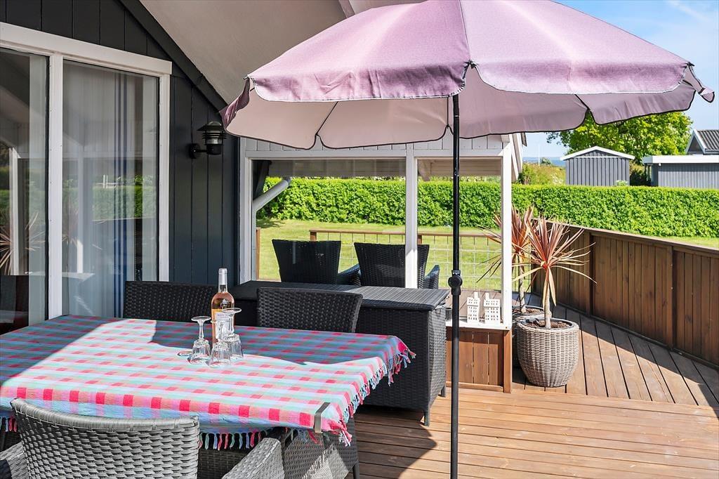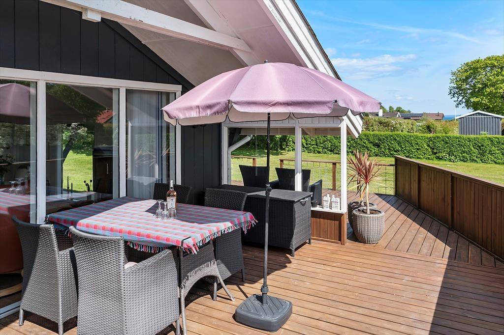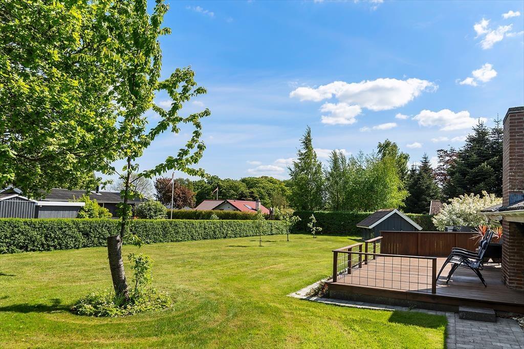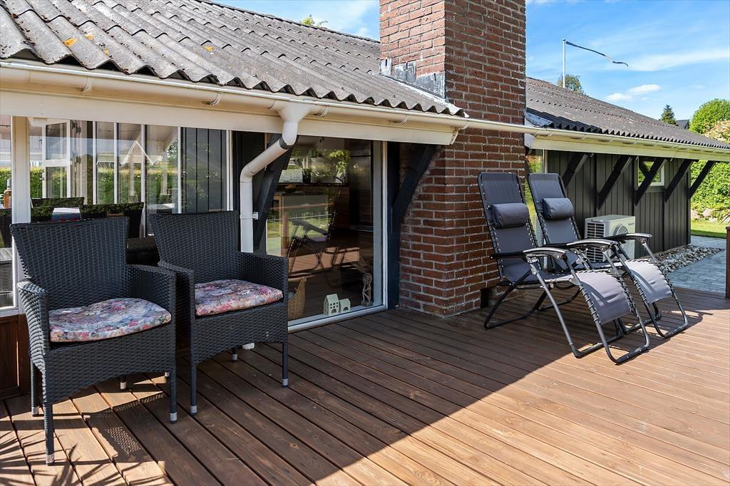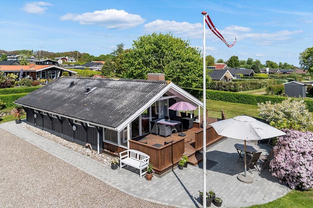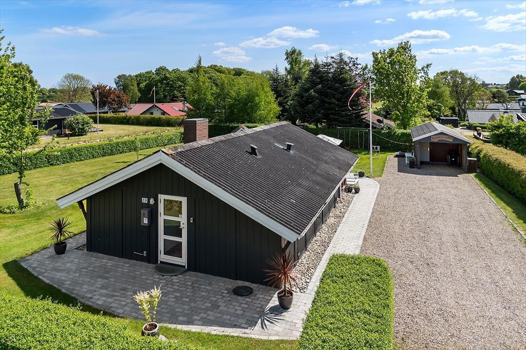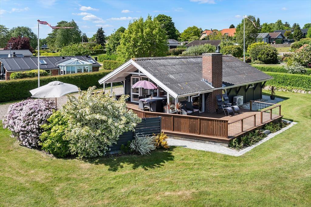 Udendørs venter flere skønne terrasser – én med kig til vandet og én overdækket, som er perfekt til lange sommeraftener i læ for dug og dugdråber. Her kan du tænde op i grillen, læne dig tilbage og lade feriefreden sænke sig. Haven er børnevenlig og grøn, med både gynge og sandkasse, som indbyder de mindste til leg under åben himmel. Omgivelserne er rolige og naturskønne, og da huset ligger for enden af en blind vej, er her næsten ingen trafik – kun fuglesang og vinden i træerne som baggrundsmusik. Det er et sted, hvor man automatisk sætter tempoet ned og nyder de små, enkle øjeblikke.