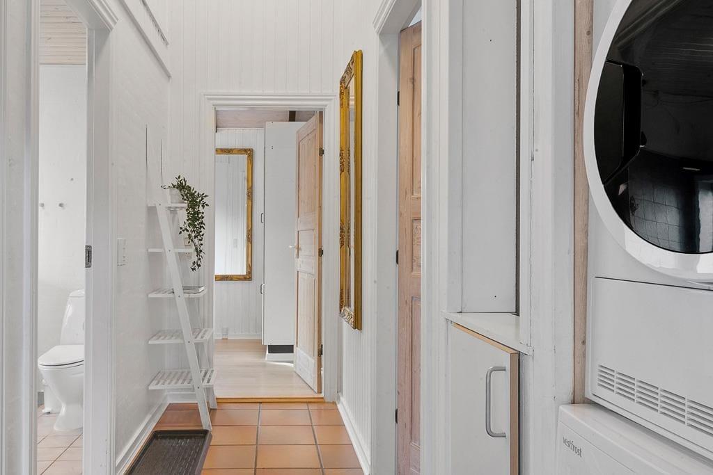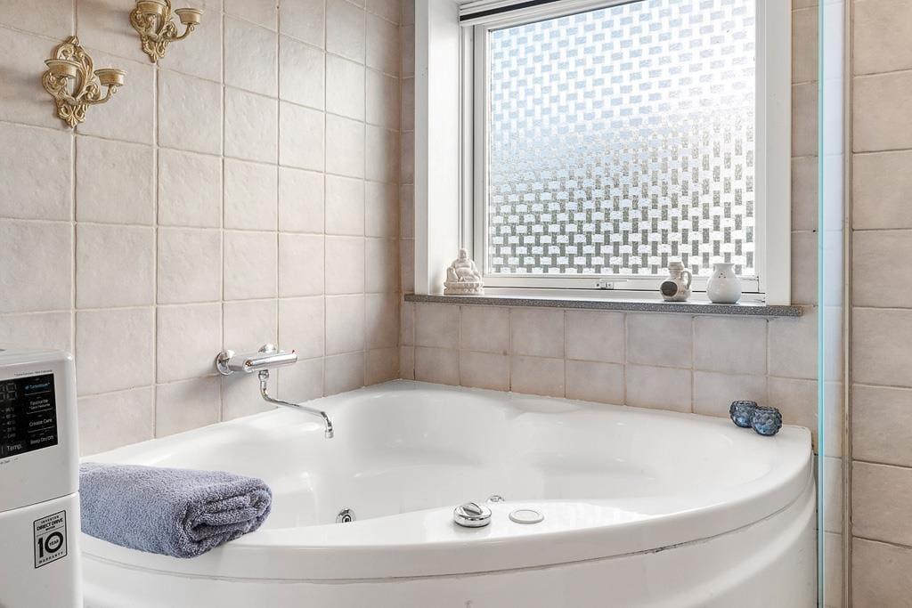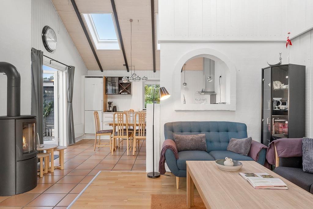 Når du træder ind i sommerhuset, bliver du mødt af en lys og indbydende atmosfære, der straks indgyder til hygge. Husets hjerte er opholdsrummet, hvor køkken, spiseplads og stue smelter sammen. Her kan familien samles til gode måltider, brætspil eller en rolig stund foran den knitrende brændeovn, der skaber varme og stemning på selv de kølige aftener. Badeværelset byder på lidt ekstra luksus i form af både spa og sauna – perfekt til afslapning efter en frisk gåtur langs vandet. Soveværelserne er indrettet med blik for ro og komfort, så du får den bedste ramme for en god nattesøvn og vågner klar til endnu en dag med ferieminder i Hejlsminde.