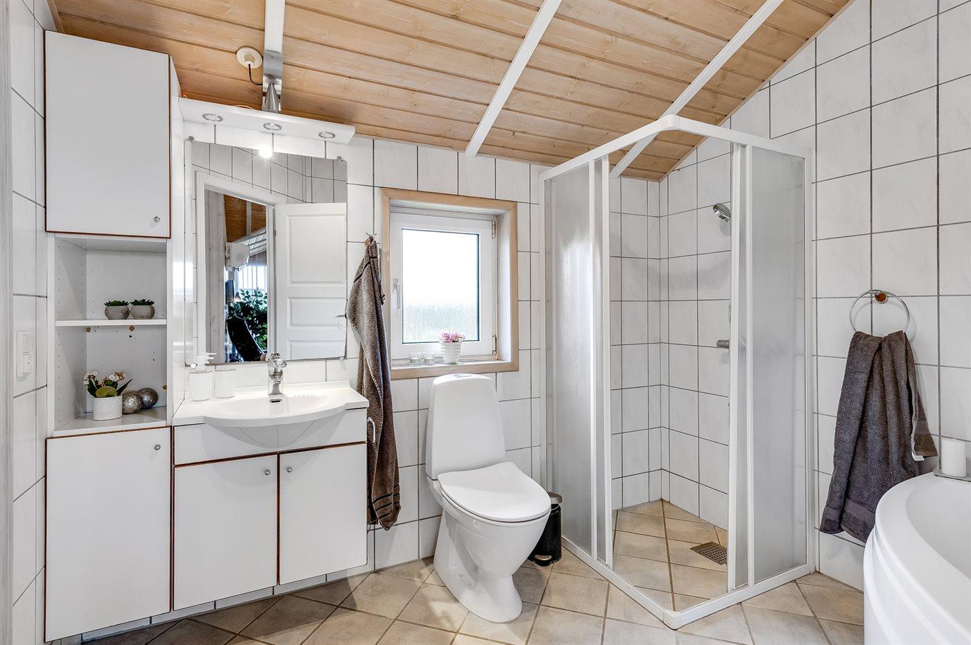 Der er 1 badeværelse med bruseniche og 1 toilet.. Der er gulvvarme på 1 badeværelse. I saunaen er der mulighed for afslapning.