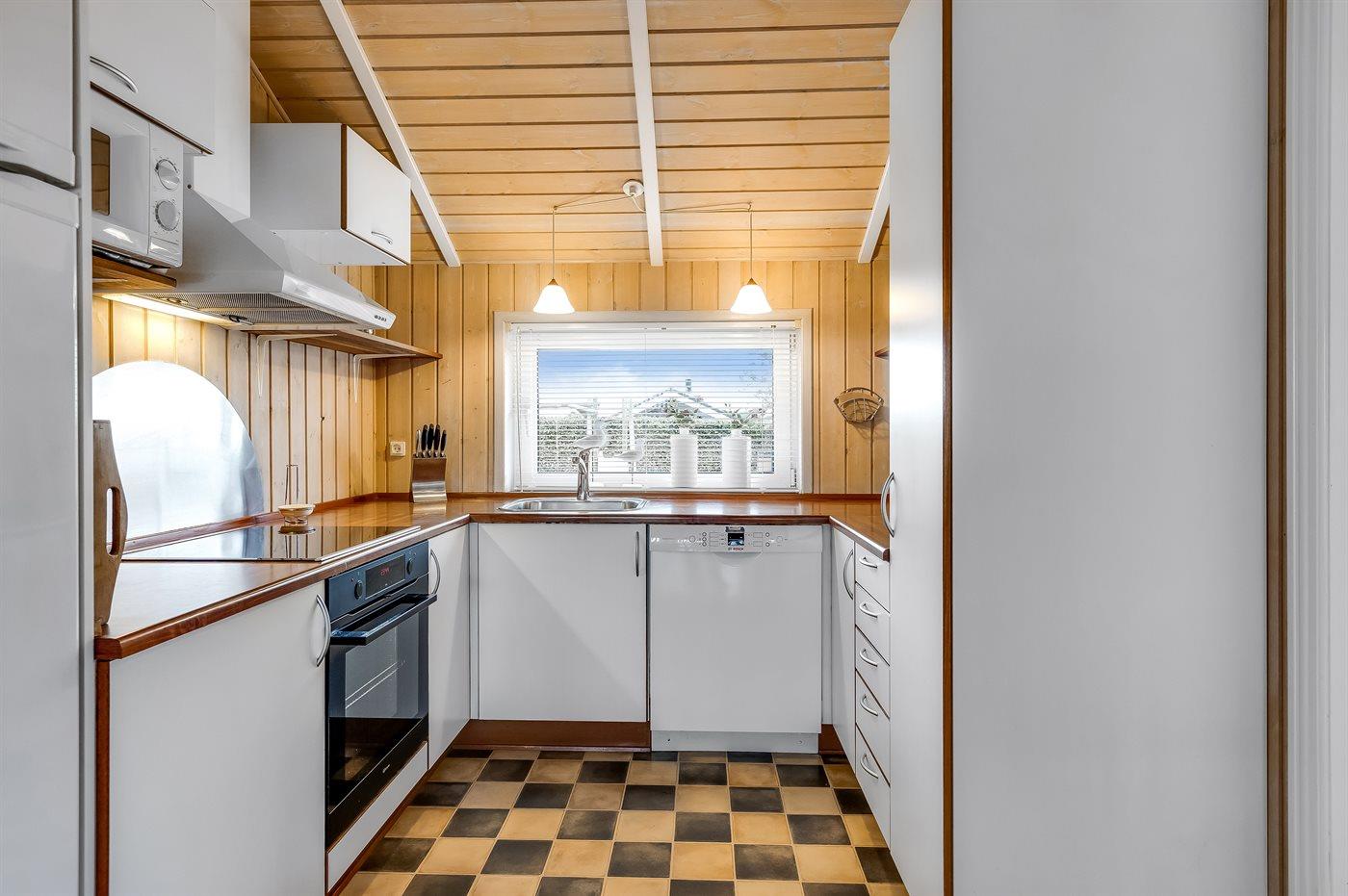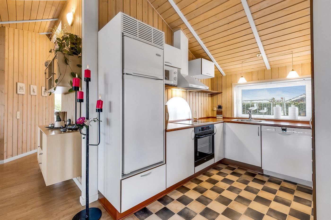 Køkkenet er udstyret med 1 køleskab. Der er 4 induktionskogeplader, varmluftovn, mikrobølgeovn samt opvaskemaskine.