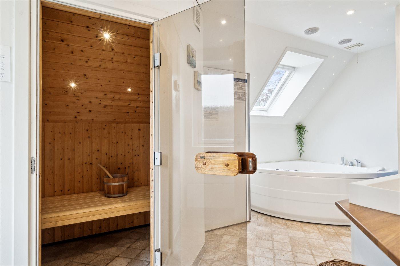 Der er 1 badeværelse med bruseniche og 2 toiletter, heraf 1 gæstetoilet. Der er gulvvarme på 1 badeværelse. I saunaen er der mulighed for afslapning.
