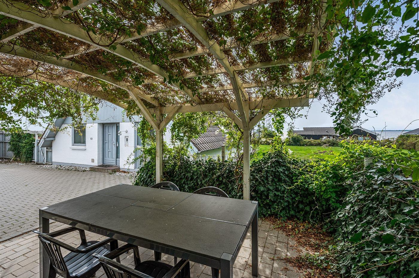 Ferieboligen er beliggende på en 978 m² stor havegrund. Der er 150 m til havet. Nærmeste forretning er beliggende i en afstand af 6800 m. Til ferieboligen hører 80 m² terrasseareal. Desuden er der 16 m² overdækket terrasse. Heraf i alt 30 m² lukket terrasse. Udgang til altan. Parkering ved ferieboligen.