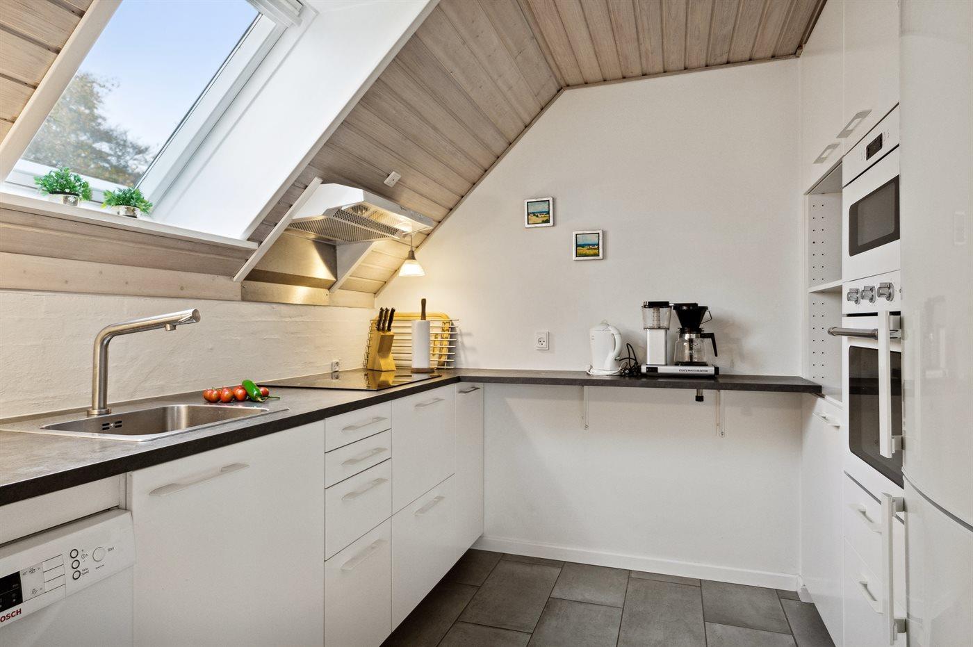 Køkkenet er udstyret med 1 køleskab. Der er 4 keramiske kogeplader, bageovn, mikrobølgeovn samt opvaskemaskine.