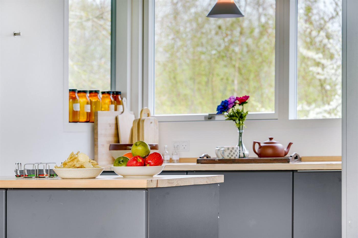 Køkkenet er udstyret med 1 køleskab. Der er 4 keramiske kogeplader, varmluftovn.