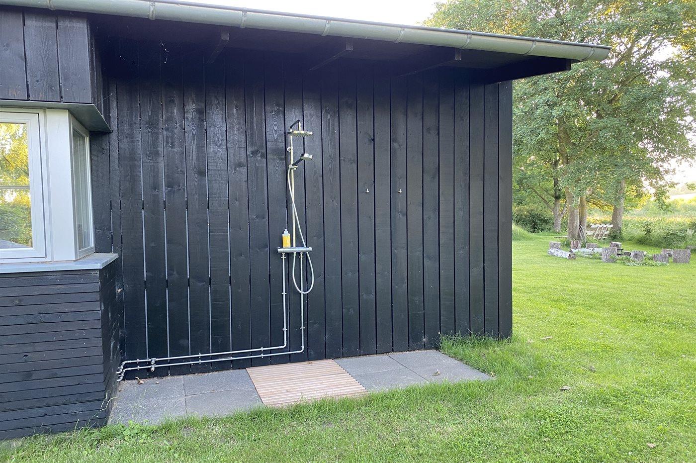 Ferieboligen er beliggende på en 1220 m² stor havegrund. Der er 500 m til havet. Nærmeste forretning er beliggende i en afstand af 8000 m. Til ferieboligen hører 40 m² terrasseareal. Desuden er der 12 m² overdækket terrasse. Udendørs bruser. Grill til rådighed. Parkering ved ferieboligen.