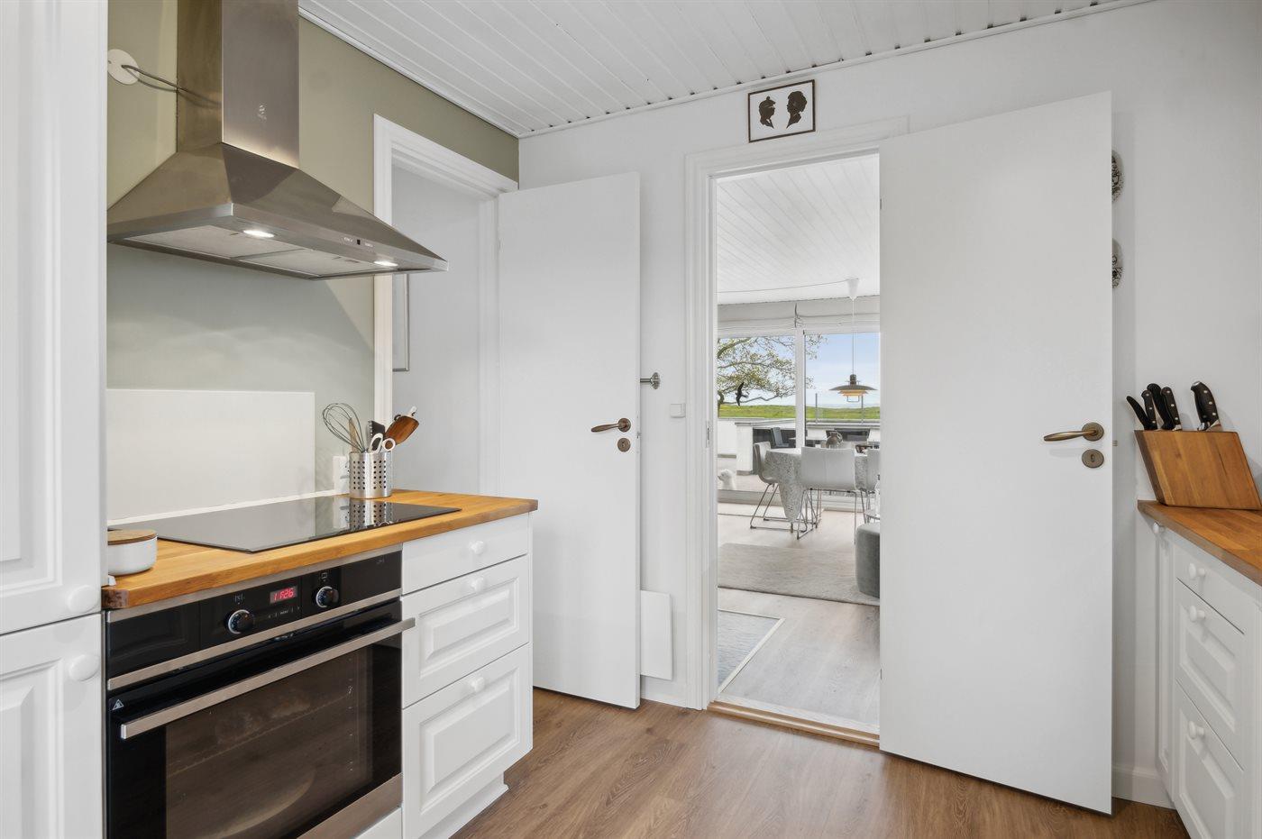 Køkkenet er udstyret med 1 køleskab. Der er 4 induktionskogeplader, varmluftovn, mikrobølgeovn samt opvaskemaskine.