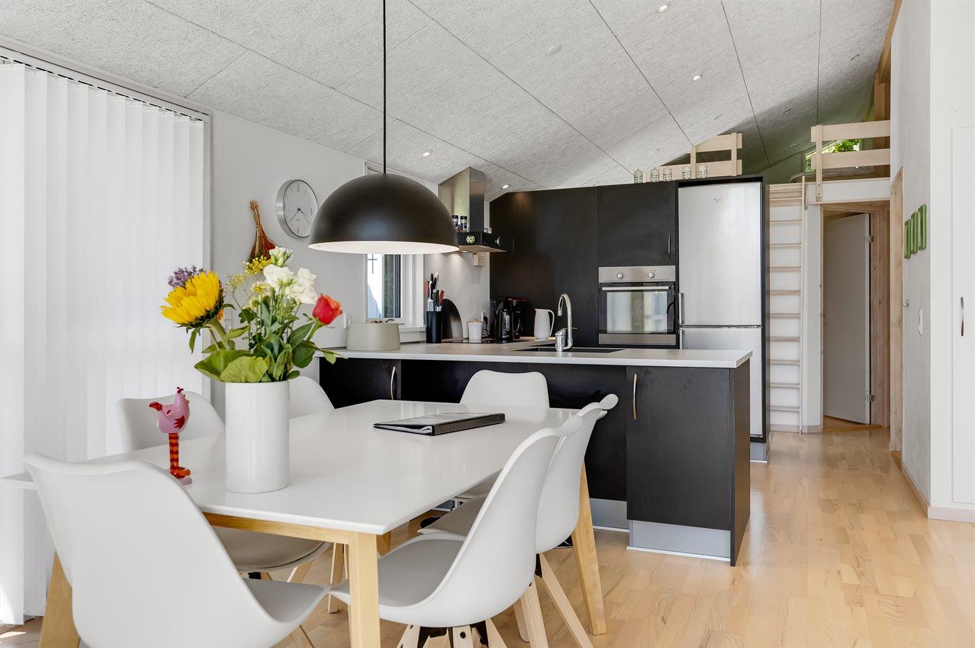 Køkkenet er udstyret med 1 køleskab. Der er 4 induktionskogeplader, varmluftovn, mikrobølgeovn samt opvaskemaskine.