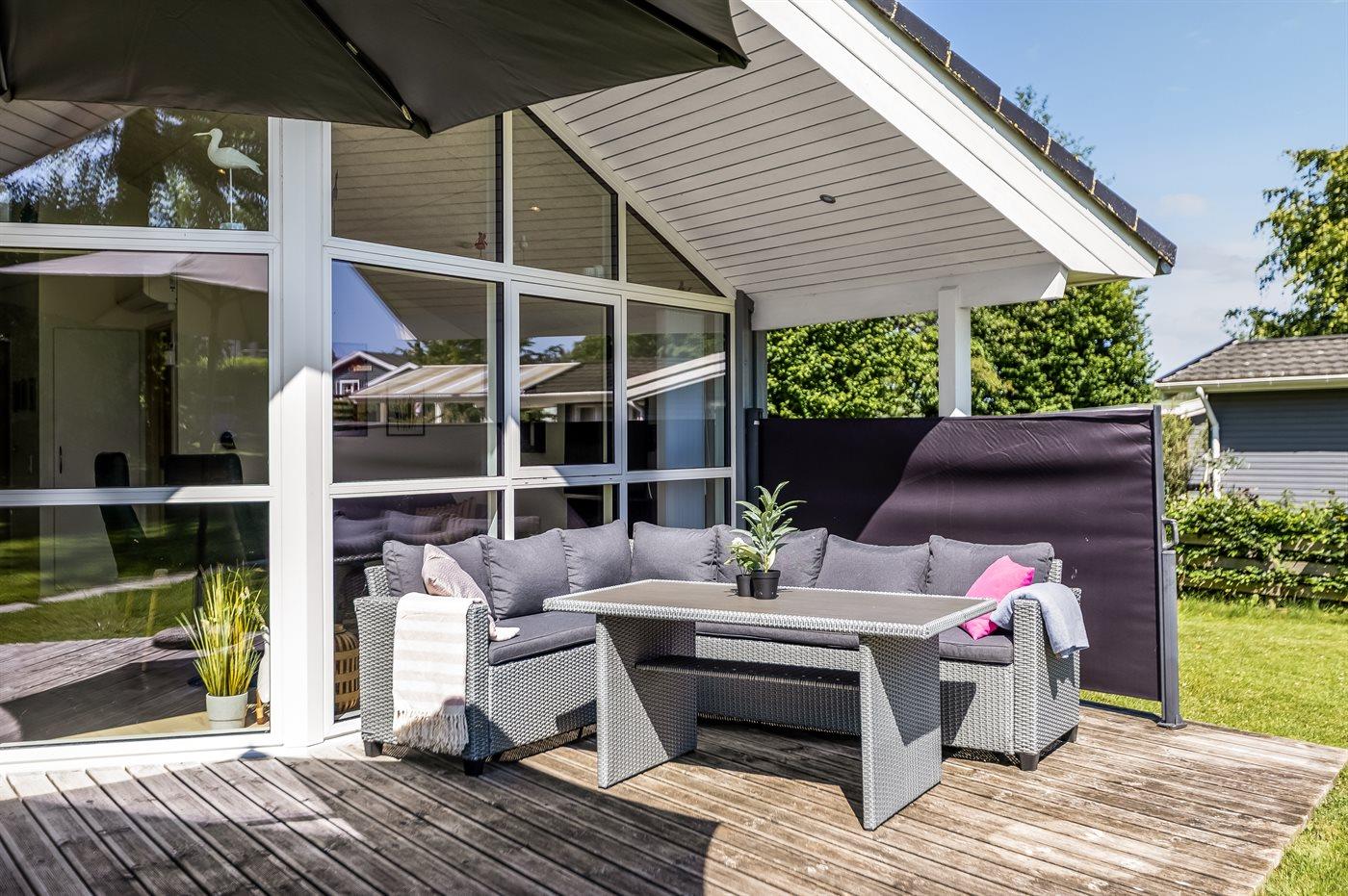 Udenfor er der såvel åbne terrasseområder som et skønt overdækket område. På terrasserne finder I flere havemøbler bl.a. en loungesæt samt liggestole til en dejlig dag, hvor I bare trænger til at læse den næste bog i solen eller i ly af skyggen.