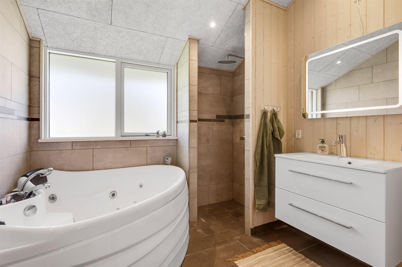 Der er 1 badeværelse med bruseniche og 2 toiletter, heraf 1 gæstetoilet. Der er gulvvarme på 1 badeværelse.