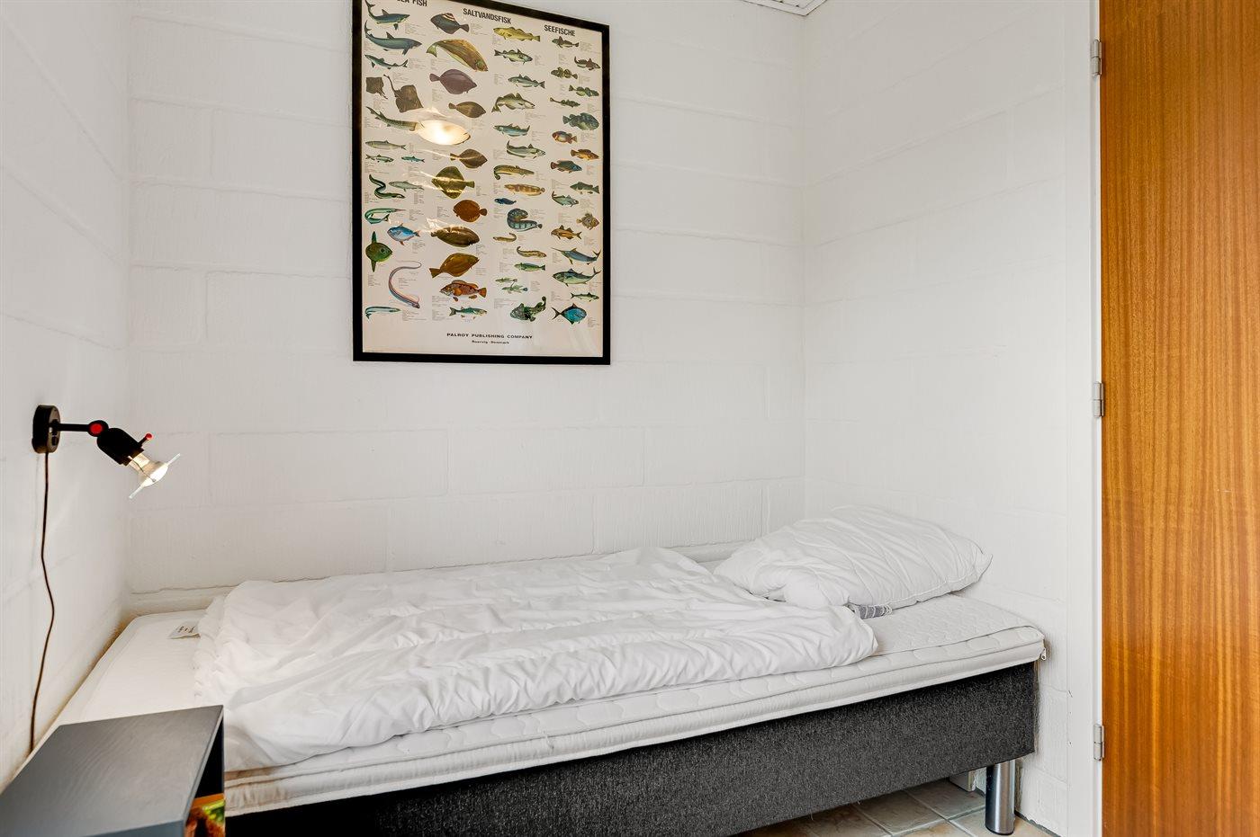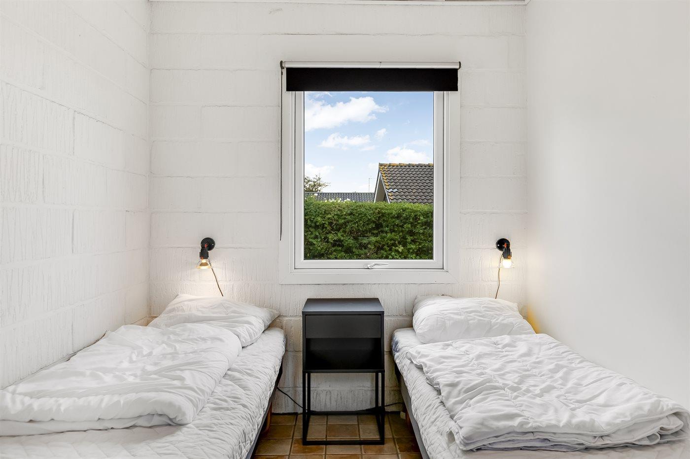 Der er i alt 3 soveværelser. Sovepladserne fordeler sig på: 2 sovepladser i dobbeltseng. 3 sovepladser i enkeltsenge. Derudover er der 1 stk. barneseng.