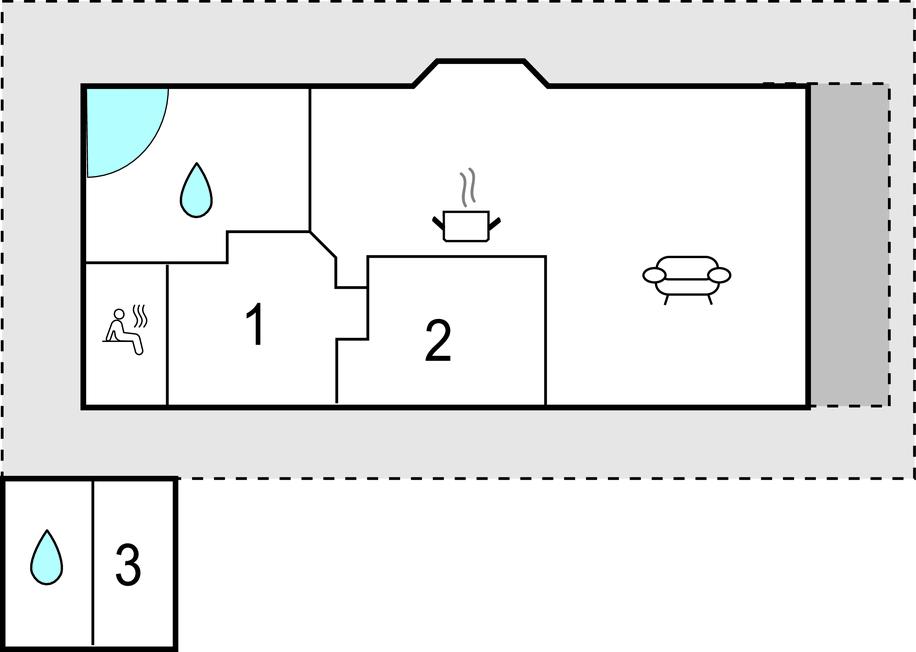 Badeværelse 2m2 (nr. 1) - WC. Varmt og koldt vand. Bruser