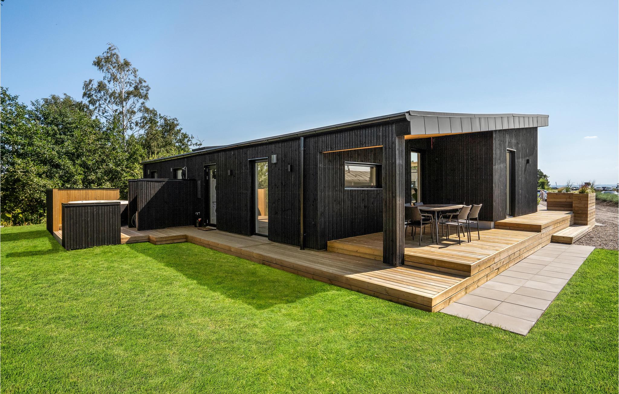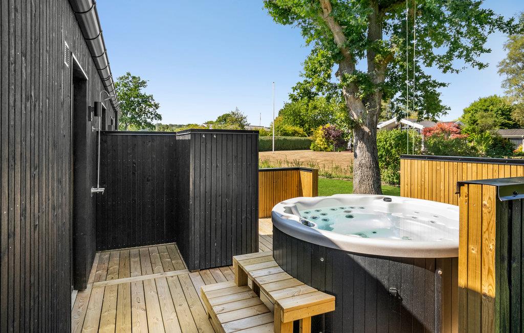 Moderne sommerhus med havudsigt, spabad og kort afstand til stranden i Hejsager.