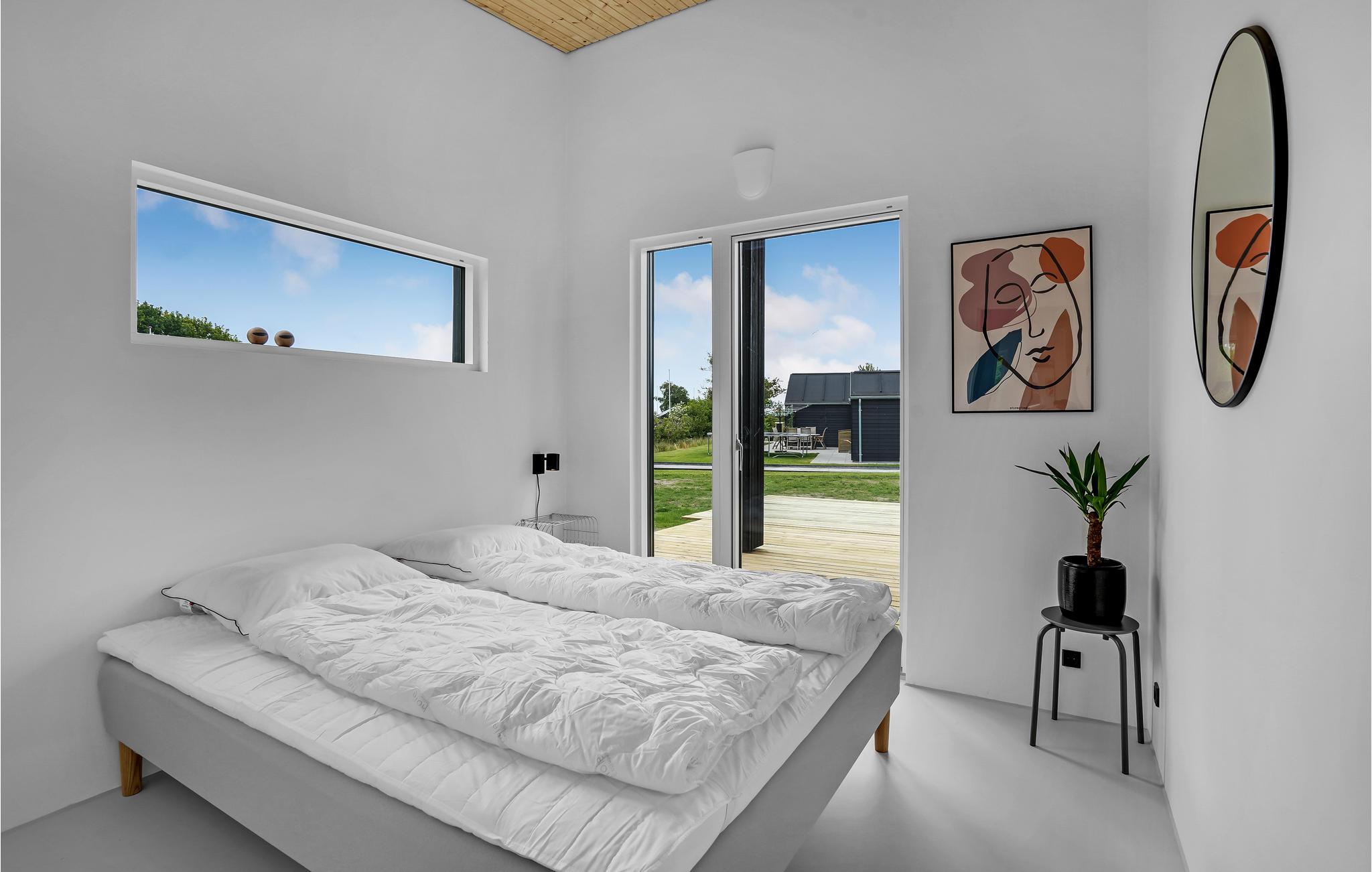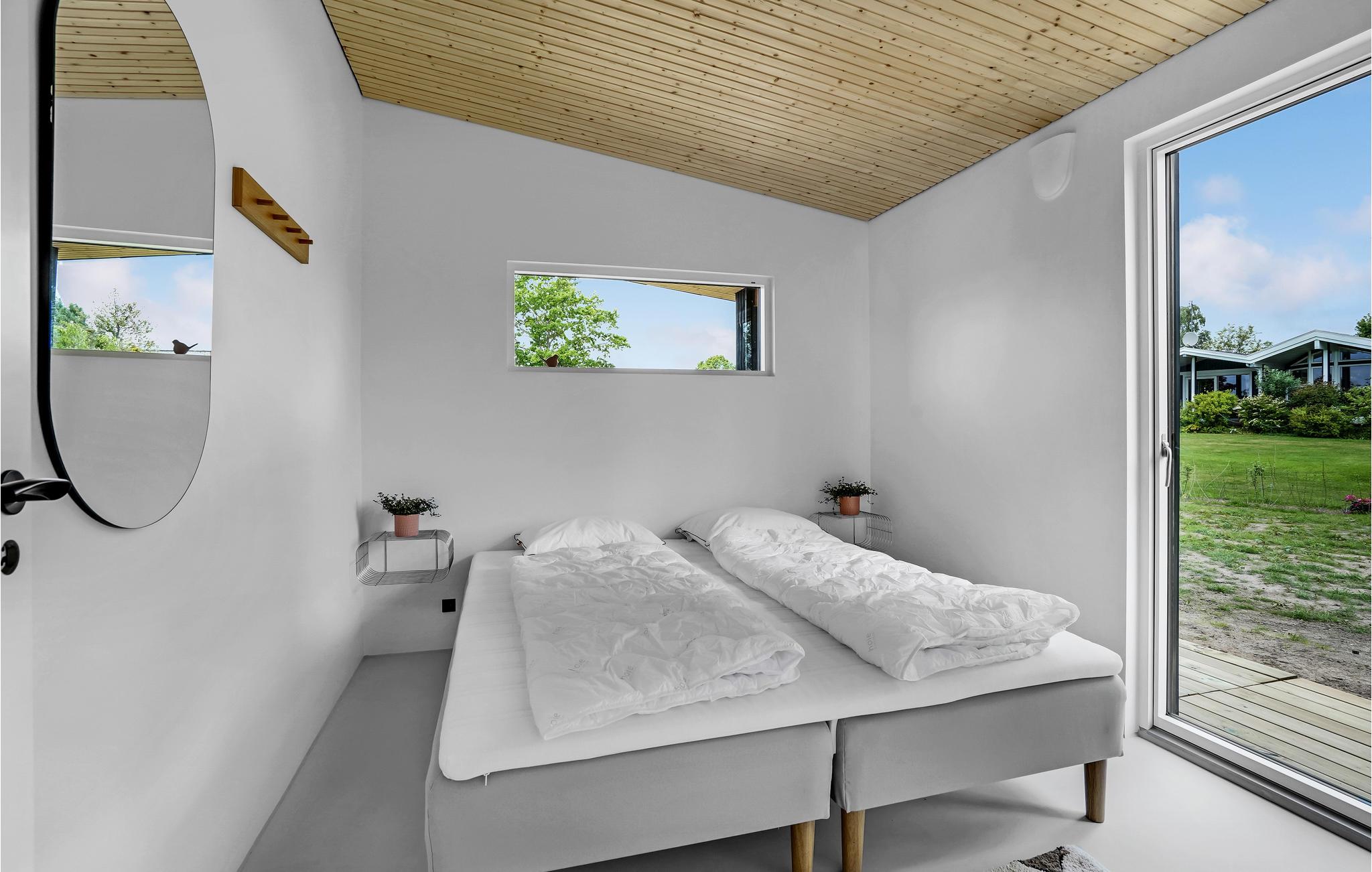Tag familien med til dette gennemførte sommerhus i Hejsager, som ligger charmerende placeret med udsigt til Sandvigbugtens rolige vand. De store vinduespartier lukker masser af lys ind i boligen, så rummene emmer af ro og har et helt særligt harmonisk udtryk. Sæt sommersalaten sammen i det strømlinede køkken og tænd op i grillen på terrassen. Efter en lang dag med mange oplevelser, kan I sætte jer til rette i spabadet og løsne op i musklerne.