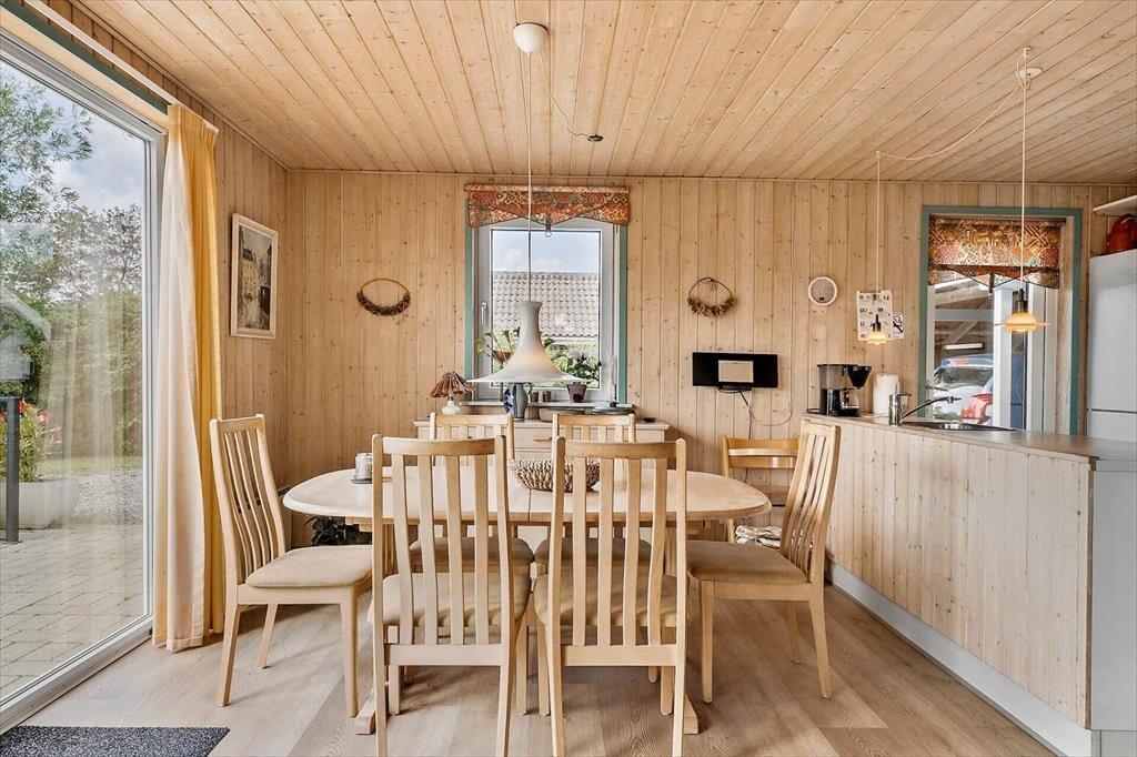 Træd ind i dette hyggelige sommerhus, der byder på en dejlig lys stue, som straks indbyder til afslapning og samvær. Her kan du synke ned i den komfortable sofa, nyde udsigten gennem de store vinduer, der lukker masser af lys ind, og skabe hyggelige minder med familie og venner. Badeværelset er indrettet med adgang til en skøn sauna, hvor du kan varme dig op efter en frisk gåtur langs stranden. Husets indretning gør det nemt at føle sig hjemme, og den rummelige stue er det perfekte sted at samle familien til brætspil, gode samtaler eller filmaftener.