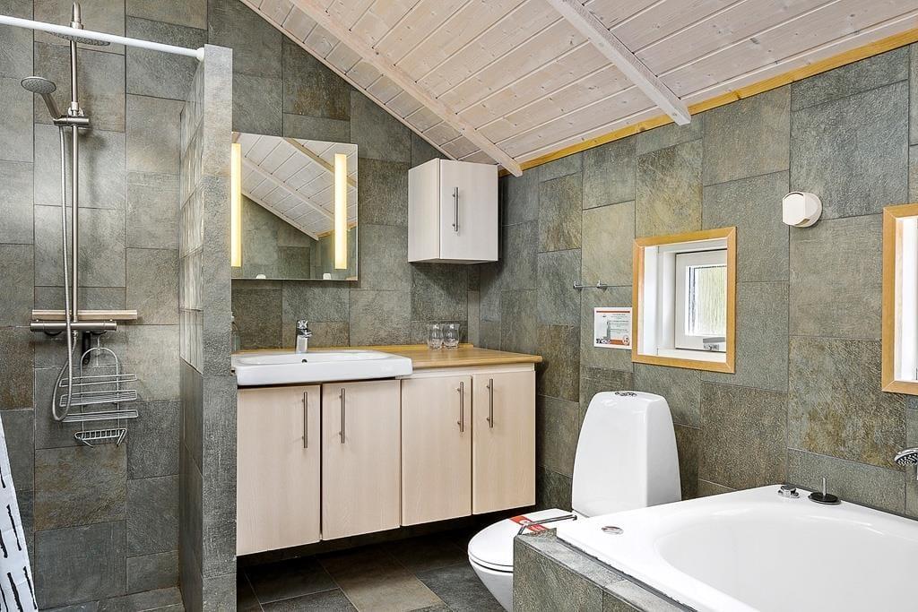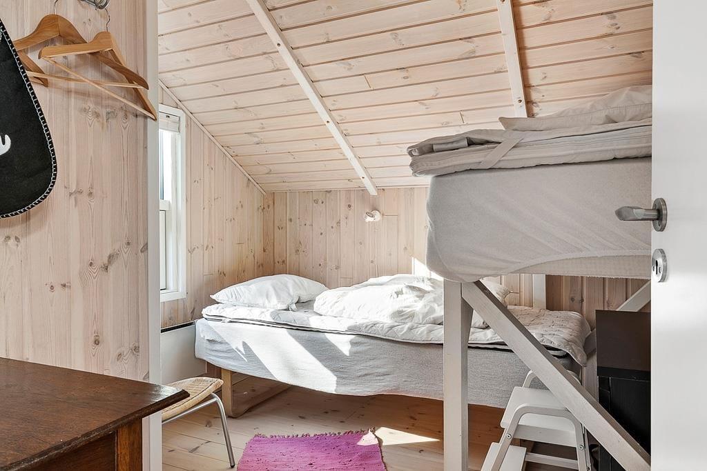 Dette sommerhus hører til i kategorien for velfungerende kvalitetssommerhuse. Overalt er her lyst, højt til loftet og indrettet med gode møbler og i en klassisk og tidløs stil, hvor enhver vil føle sig godt tilpas. Hovedhuset består af to værelser, et flot badeværelse med bruser og badekar, køkken og stue med tv og brændeovn. I det tilhørende anneks finder I to værelser og endnu et flot badeværelse; her kan man være lidt sig selv, hvis man ønsker det, og har man teenagere i familien er denne del oplagt som ’ungdomsafdeling’. Hele sommerhuset er godt udstyret med moderne faciliteter som, opvaskemaskine, vaskemaskine og tørretumbler, og husker I at medbringe pc eller tablets hjemmefra, kan I gå på det trådløse internet og tjekke mails og finde alle nødvendige oplysninger om områdets mange muligheder.