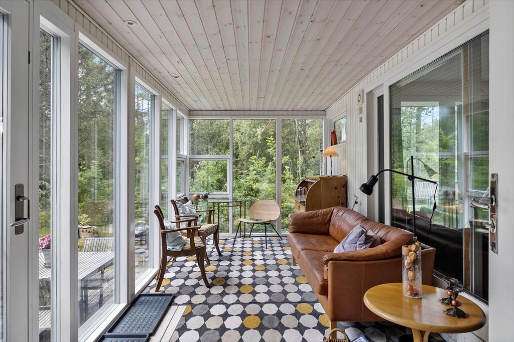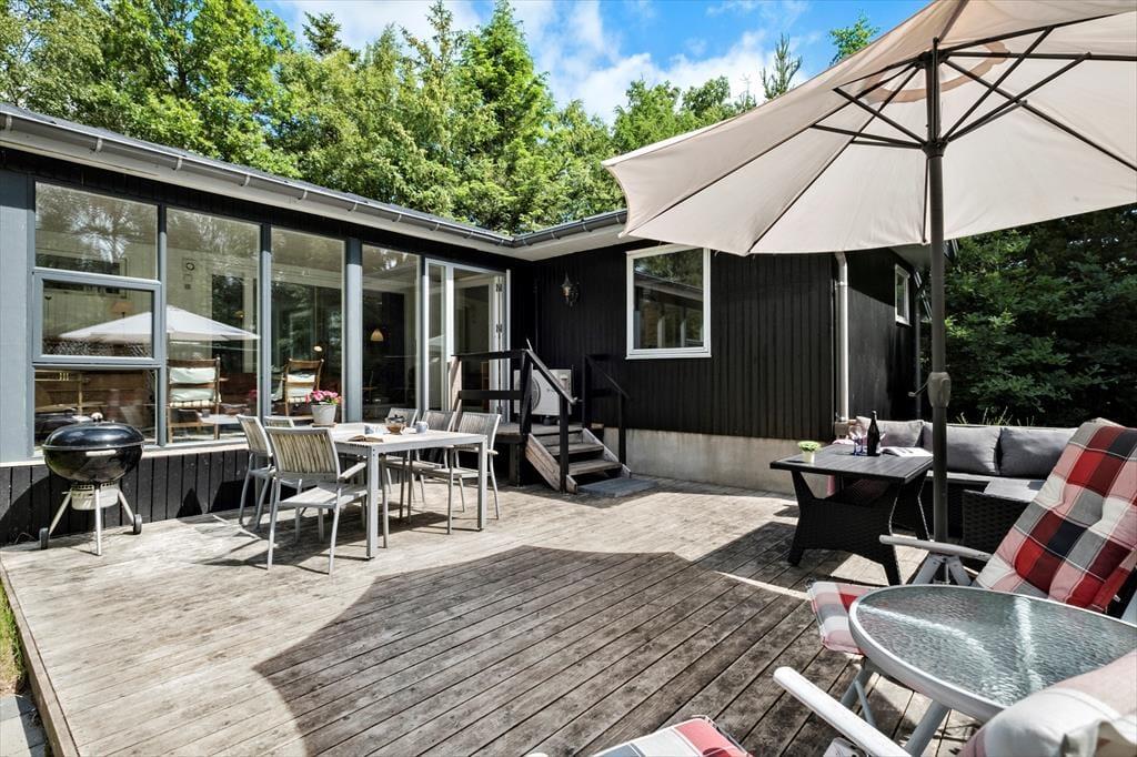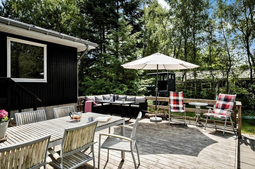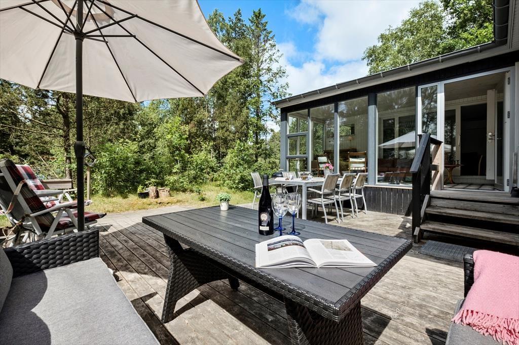 Kun 300 meter fra huset ligger rolige og smukke Kattegat, som byder på de mest fantastiske solopgange. Det blæser mindre på Jyllands Østkyst og midt i skoven, kan I næsten altid finde et rart sted med læ, hvis vinden skulle melde sig alligevel. Den dejlige havestue i direkte forbindelse med stuen kan nydes hele året rundt.
