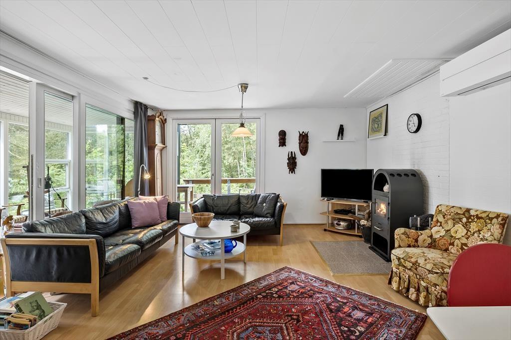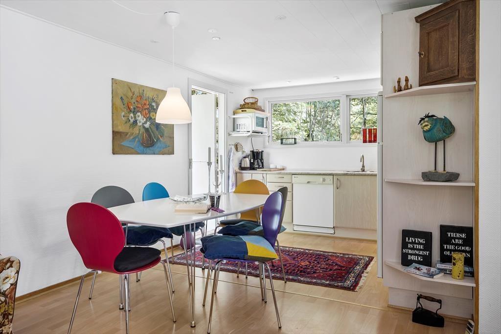 Husets 90 m2 byder på masser af plads til selv en stor familie og også udenfor er der masser af plads til at opholde sig på den store terrasse eller i den smukke natur, der omgiver huset.