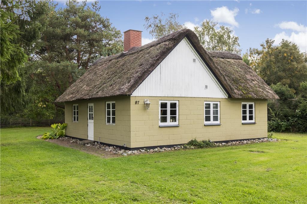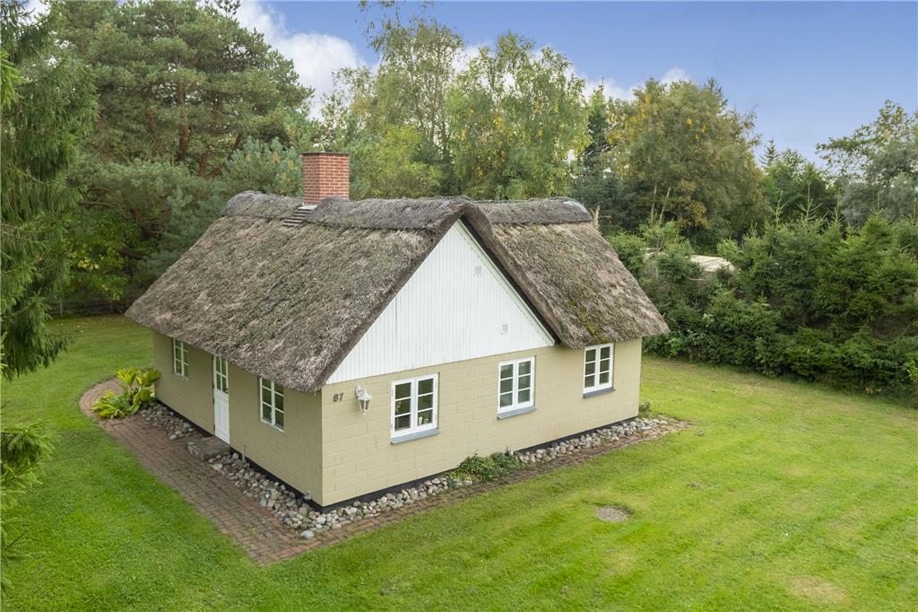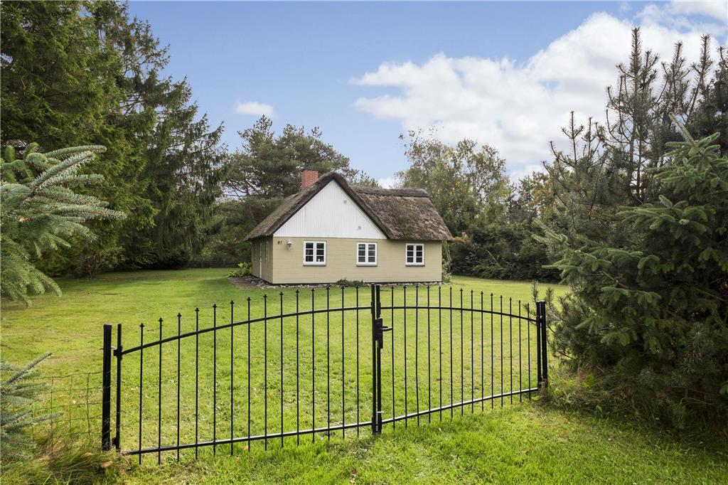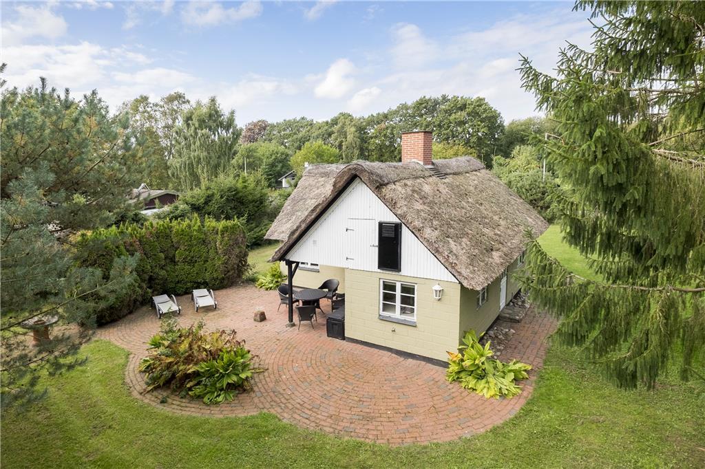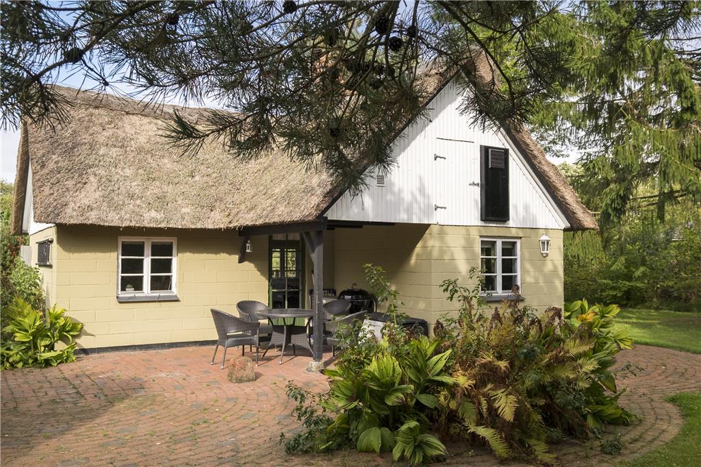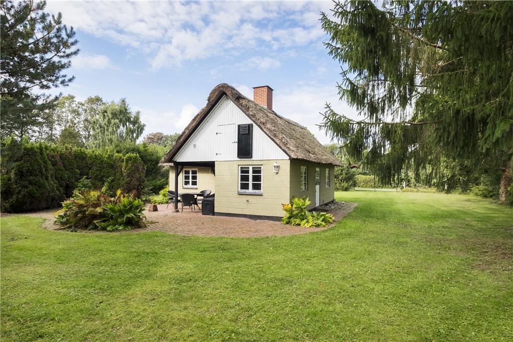 Dette lille, charmerende, stråtækte sommerhus ligger i dejlig natur og oser langt væk af sommerhusidyl.