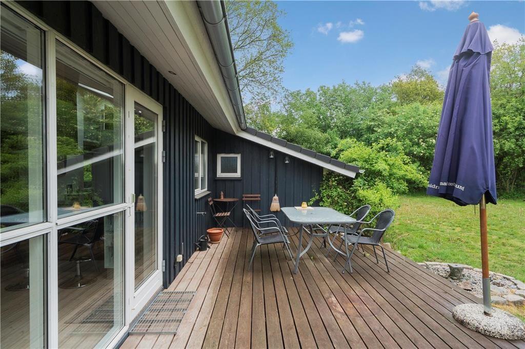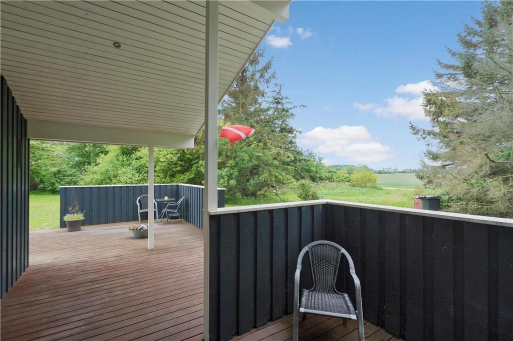 Rendyrket afslapning er der bestemt også gode forhold for ude på husets store terrasse. Den vender både mod syd og vest og er delvist overdækket, så der er flere valgmuligheder, når I vil nyde livet i havemøblerne eller liggestolene. Huset råder også over en grill, så I kan tilberede aftensmaden ude i det fri. Hvis I får lyst til at røre jer lidt efter måltidet, kan I dyste i vikingespil eller drible med fodbolden på havens store græsplæne.