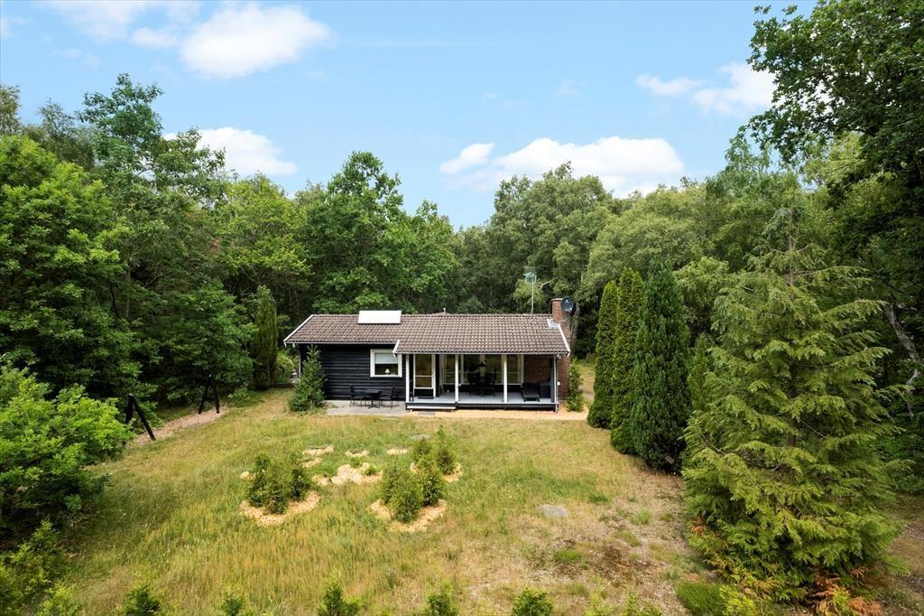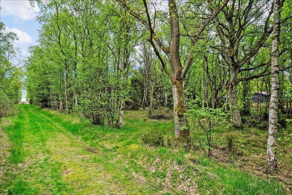 Huset ligger på en 2.535 m2 stor naturgrund med flere dejlige terrasser – inklusiv en overdækket terrasse, hvis I får brug for ly eller skygge i løbet af dagen. En carport ligger også på grunden, og rundt omkring vokser træer, så I får fornemmelsen af at bo i en lysning midt i skoven.