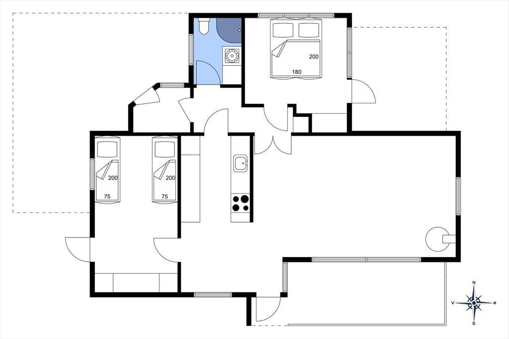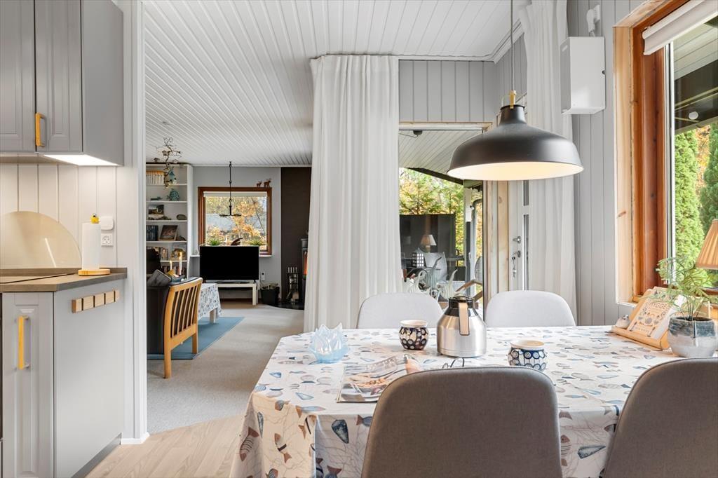 Når I ellers ikke bruger ferietiden ude i det fri, giver sommerhuset jer en god og tryg base. Husets 70 m2 er fornuftigt fordelt: De to soveværelser giver plads til i alt fire personer, og der er god plads i stuen til, at alle kan samles – for eksempel til et godt måltid mad omkring spisebordet, eller når I slænger jer i sofaafdelingen nær brændeovnen. Køkkenafdelingen ligger i åben forbindelse med stuen, så selv når I kokkererer, kan I tage del i den fælles feriehygge. Sidst, men ikke mindst, byder planløsningen også på et badeværelse med bruseniche og vaskemaskine.