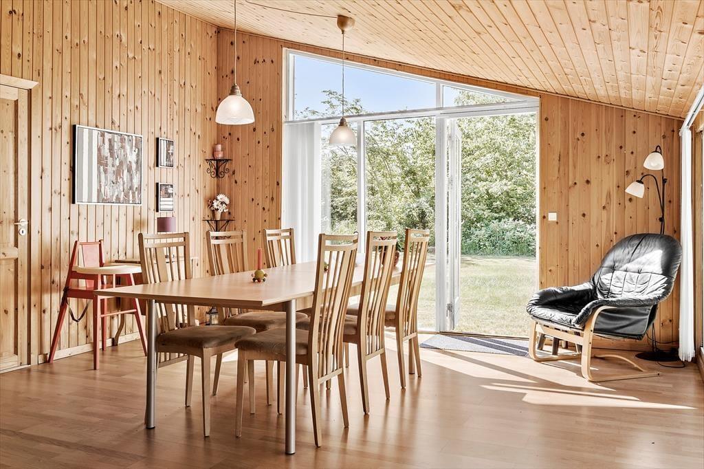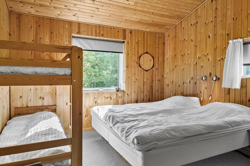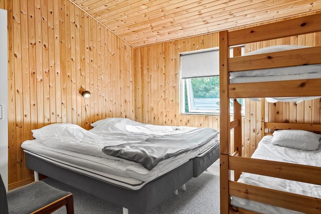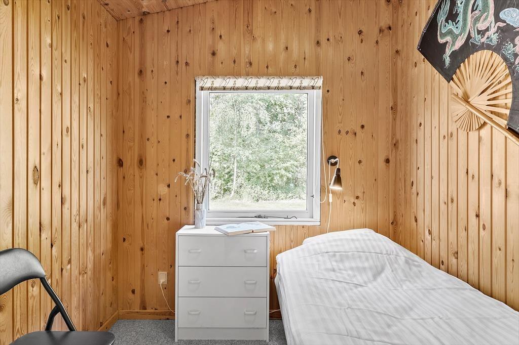 Tre store soveværelser og to lidt mindre ligger godt fordelt i sommerhuset, så I får rig mulighed for at få en god nats søvn – selv hvis dele af selskabet skulle snorke eller gerne vil blive længe oppe. I opholdsafdelingen har I masser af plads til at hygge jer: Der er flere spiseborde, hvor I kan samles til et lækkert måltid eller finde jeres medbragte brætspil frem, og det komfortable sofaarrangement indbyder til total afslapning, for eksempel med ild i brændeovnen og en spændende film i tv. Et rummeligt køkken med opvaskemaskine ligger som del af opholdsafdelingen, og fra entréen har I adgang til et stort badeværelse med bruser, vaskemaskine og tørretumbler.