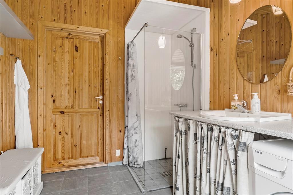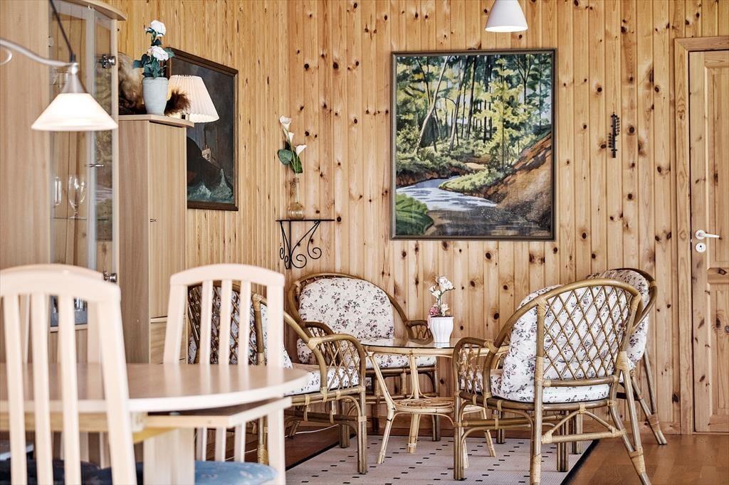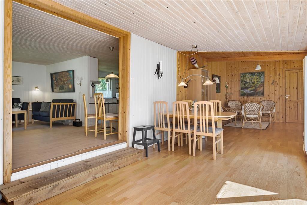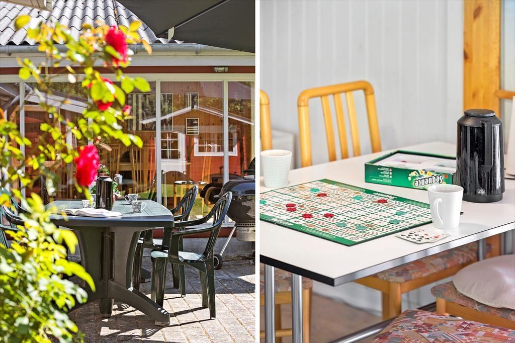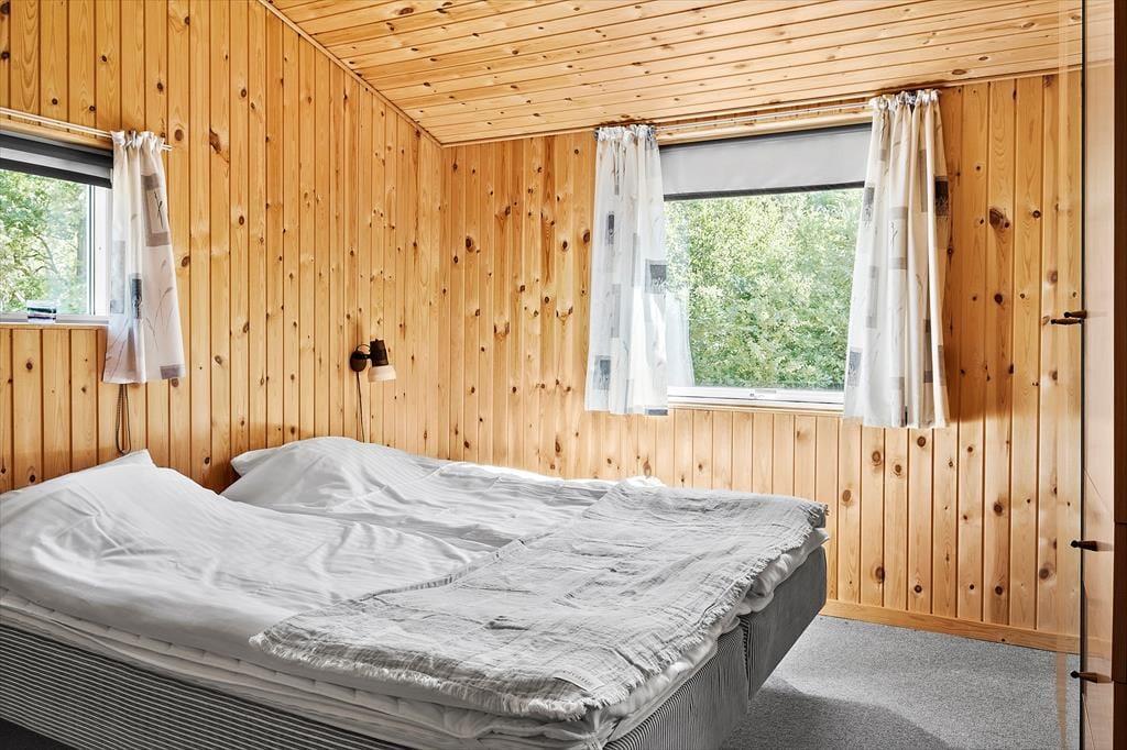 Tre store soveværelser og to lidt mindre ligger godt fordelt i sommerhuset, så I får rig mulighed for at få en god nats søvn – selv hvis dele af selskabet skulle snorke eller gerne vil blive længe oppe. I opholdsafdelingen har I masser af plads til at hygge jer: Der er flere spiseborde, hvor I kan samles til et lækkert måltid eller finde jeres medbragte brætspil frem, og det komfortable sofaarrangement indbyder til total afslapning, for eksempel med ild i brændeovnen og en spændende film i tv. Et rummeligt køkken med opvaskemaskine ligger som del af opholdsafdelingen, og fra entréen har I adgang til et stort badeværelse med bruser, vaskemaskine og tørretumbler.