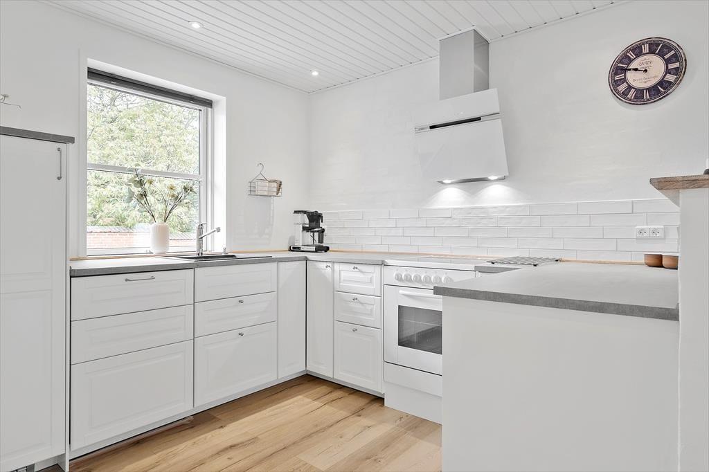 Det gedigne murstenshus på 128 m2 har gennemgået en grundig renoveringsproces i 2022, hvilket forklarer den lyse og indbydende indretning, der pryder alle rum. Hoveddøren lukker jer ind i en rummelig entré med vaskesøjle og skabsplads, og herfra har I adgang til et gæstetoilet, et badeværelse og tre gode soveværelser, der alle er med dobbeltseng. Via en skydedør kan I også fortsætte ind i stuen, som er et skønt opholdsrum med lækker køkkenafdeling, spisebord og sofahjørne med fladskærms-tv. Der er for øvrigt en alkove, som eventuelt kan bruges til overnatning – og i løbet af dagen er den perfekt, hvis I vil flade ud med en spændende krimi eller have en middagslur.