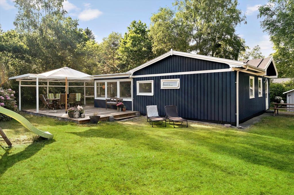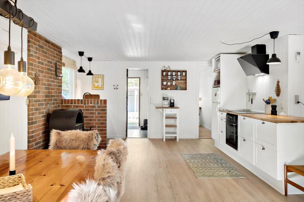Efter en vellykket renovering i 2023 har sommerhuset en skøn atmosfære og en indbydende indretning, så det er det perfekte sted at folde ferielivet ud med kortspil, lækre middage og tilbagelænede læsestunder. Et lyst og rummeligt køkken udgør den ene ende af opholdsrummet, der også byder på en brændeovn nær spisepladsen, en hyggelig sofaafdeling og et fladskærms-tv med Chromecast. Entréen er indrettet som et praktisk bryggers med vaskemaskine og god plads til overtøj, og derudover fuldendes planløsningen af et brusebadeværelse og tre gode dobbeltværelser.