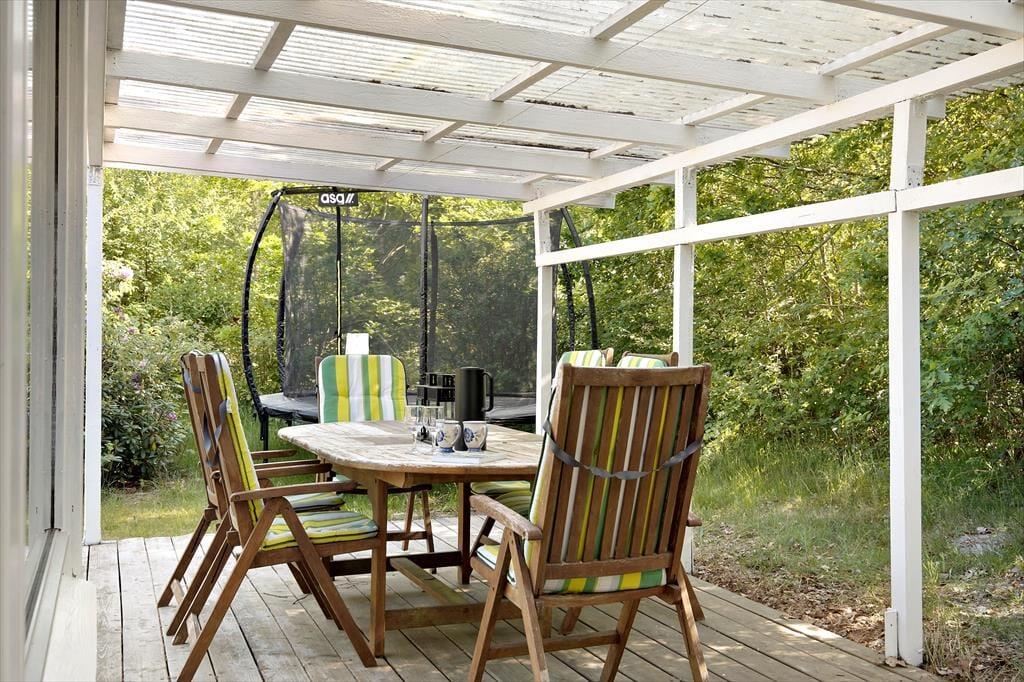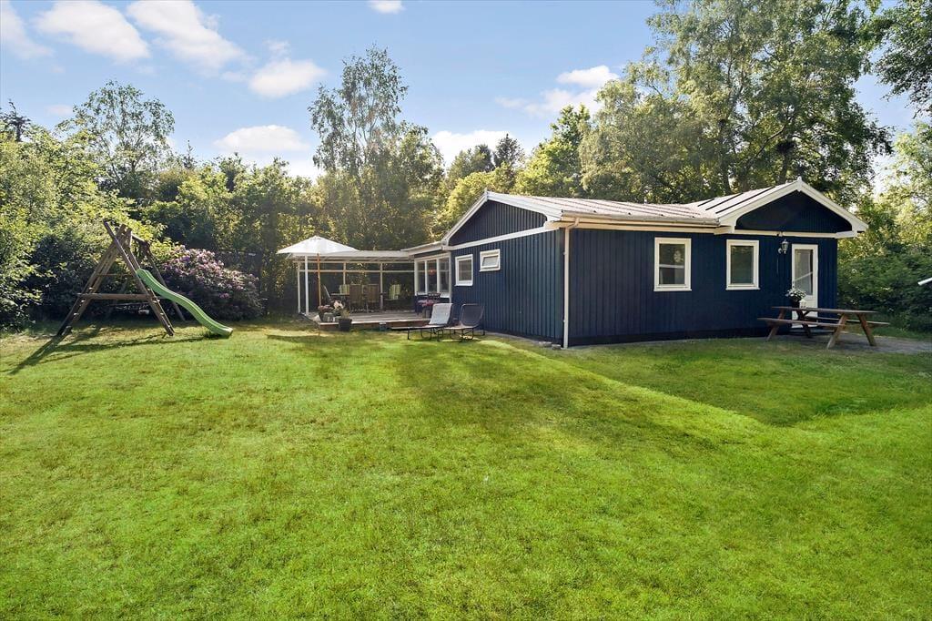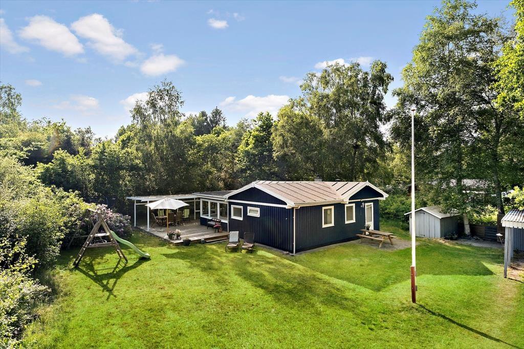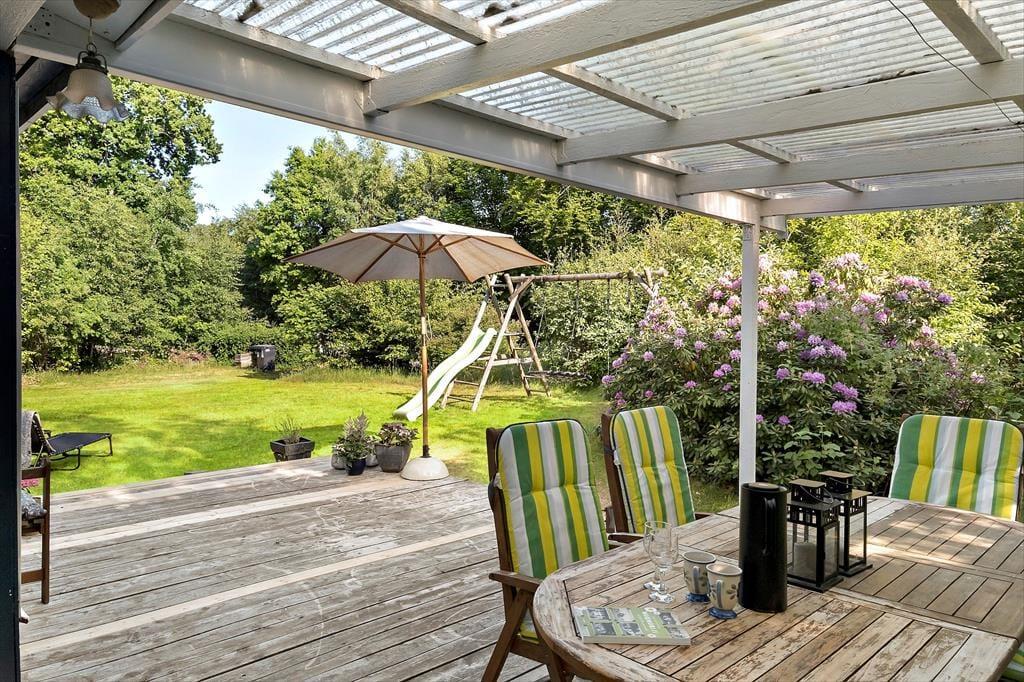 På den 1210 m2 store naturgrund har I flere gode opholdspladser at vælge imellem, når solen lokker jer ud i det fri. En del af det sydvestvendte terrassemiljø er overdækket, og der er også åbne solkroge, hvor I kan slappe af og nyde livet. Børnene og hunden kan boltre sig på græsplænen, når I ikke begiver jer ud for at udforske Helberskov og omegn i samlet flok.