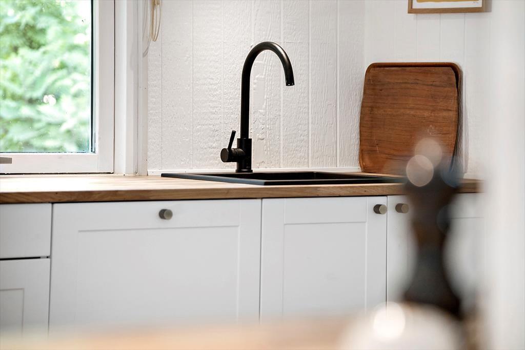 Stuens brændeovn, det moderne åbne køkken og den grønne udsigt til naturgrunden – det er bare et udvalg af de skønne ting, der gør ferielivet ekstra hyggeligt og komfortabelt i dette velrenoverede sommerhus i Helberskov.