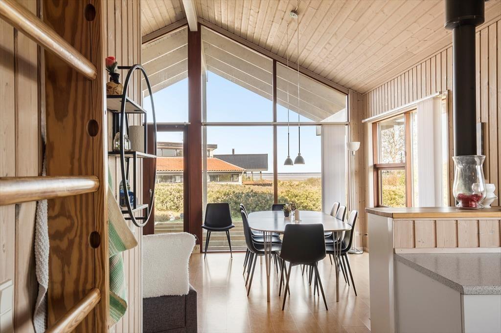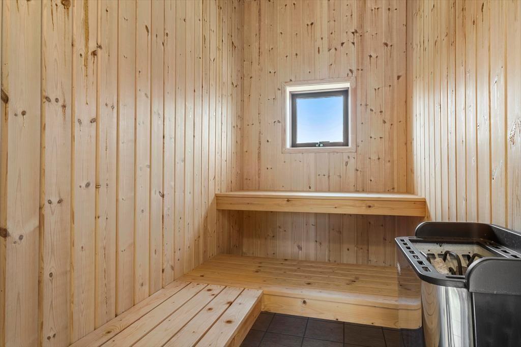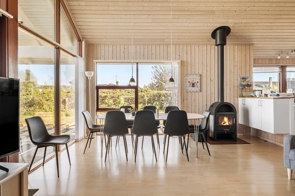 Indretningen er smagfuld med komfortable møbler og et åbent køkken-alrum, der inviterer til samvær. De store vinduespartier sørger for, at lyset strømmer ind, og du kan nyde den betagende udsigt over Kattegat fra både stuen og spiseområdet. Når aftenen falder på, kan I tænde op i brændeovnen og nyde en afslappende stund med en god bog eller en hyggelig film. Sommerhuset rummer også en dejlig sauna, hvor I kan varme jer efter en dag med frisk havluft og udendørsaktiviteter.