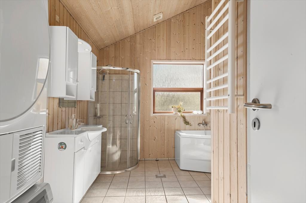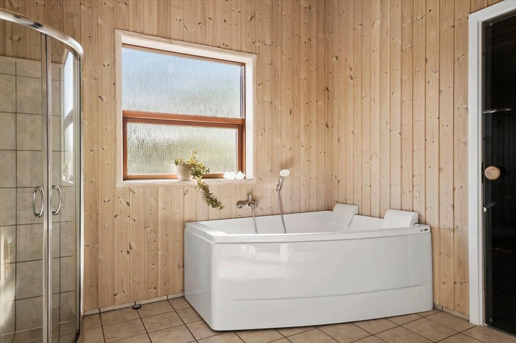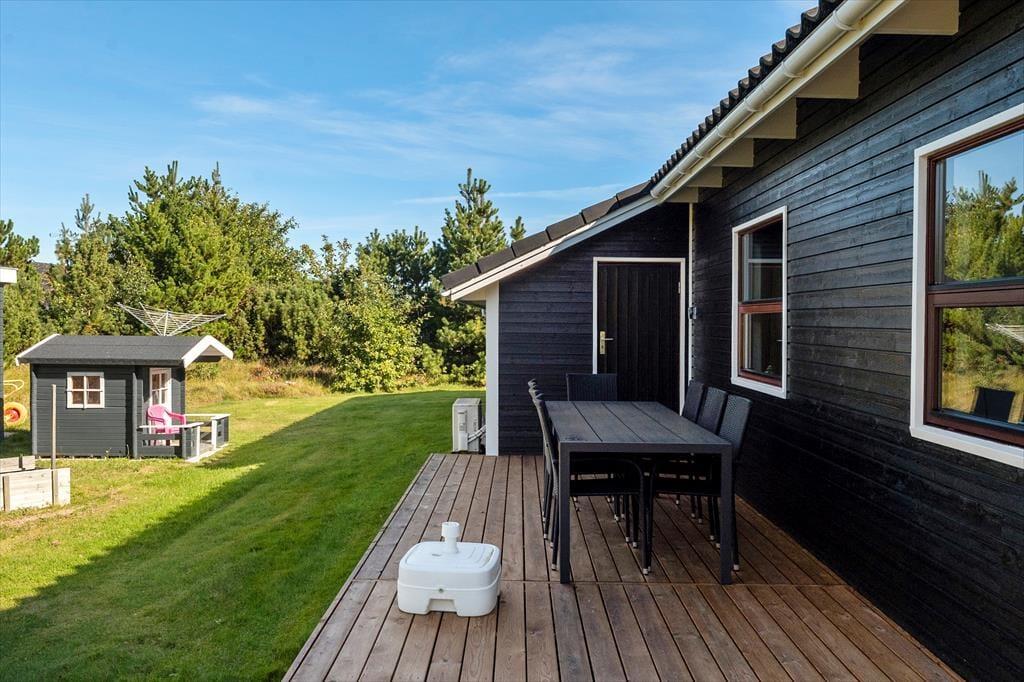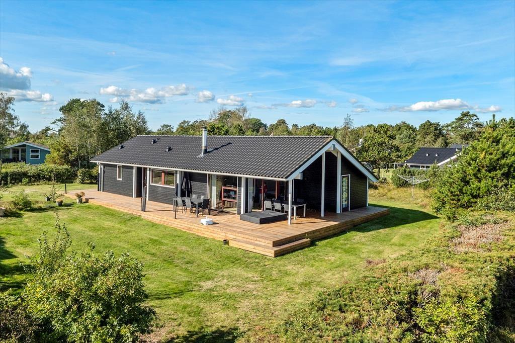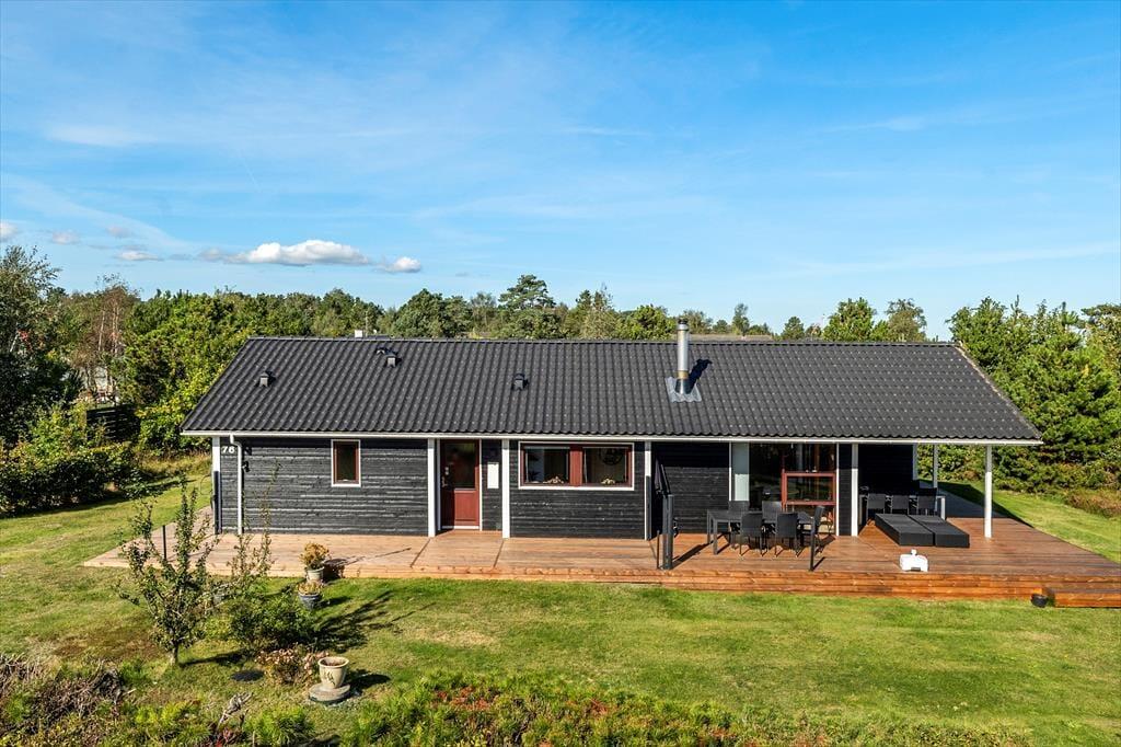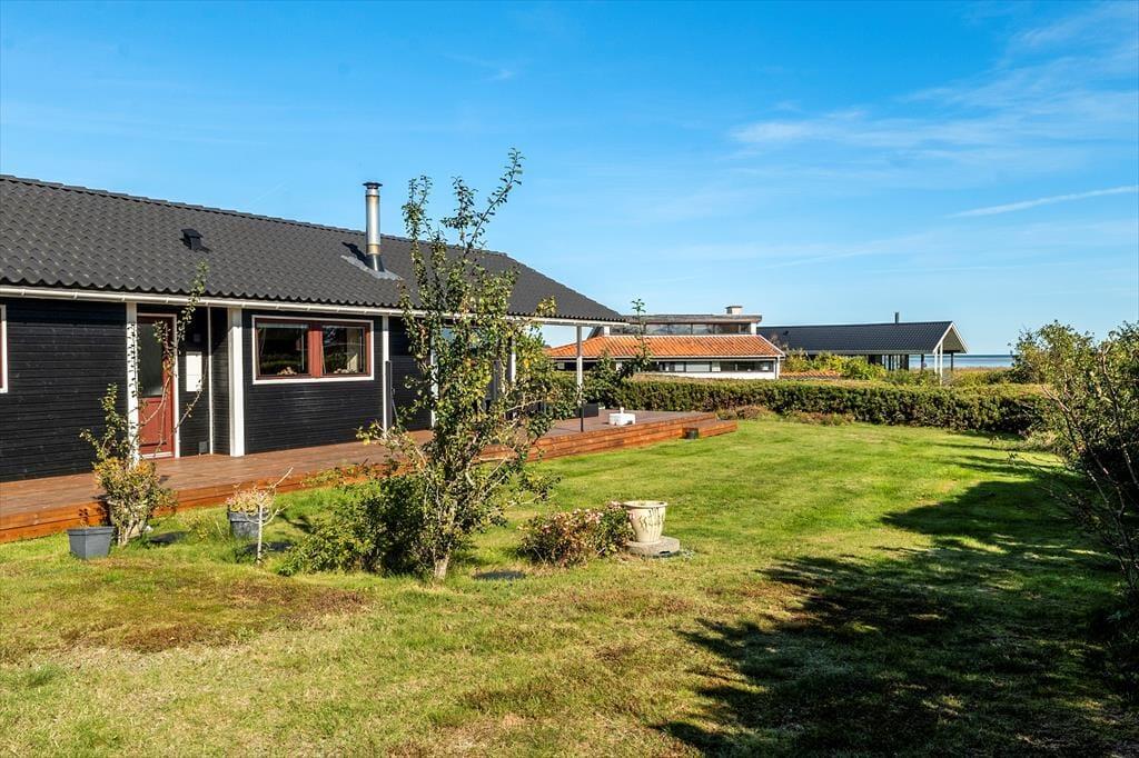 Udenfor venter en stor terrasse, hvor du kan slappe af i komfortable havemøbler og lade blikket vandre ud over havet. Terrassen er det oplagte sted at nyde dagens måltider – måske tilberedt på grillen, mens børnene leger på græsplænen. De børnevenlige faciliteter gør det nemt for hele familien at have en dejlig ferie. På den store naturgrund kan børnene løbe frit rundt og udforske området, mens du nyder roen og den friske luft. Det er også her, I kan samle jer om hyggelige havespil eller bare læne jer tilbage og lytte til fuglenes kvidre og havets beroligende bølgeskvulp. Livet udenfor er en naturlig forlængelse af opholdet indenfor, og du kan nemt tage formiddagskaffen med ud på terrassen eller nyde en stille stund med udsigt til solen, der glitrer i Kattegat.