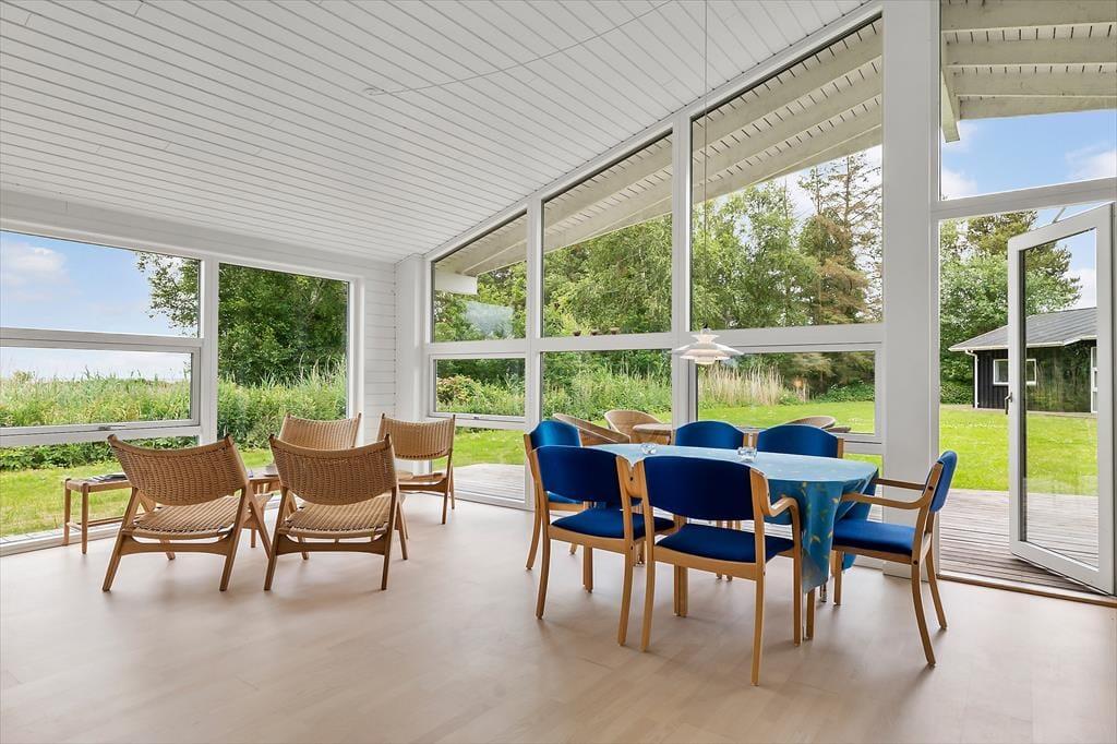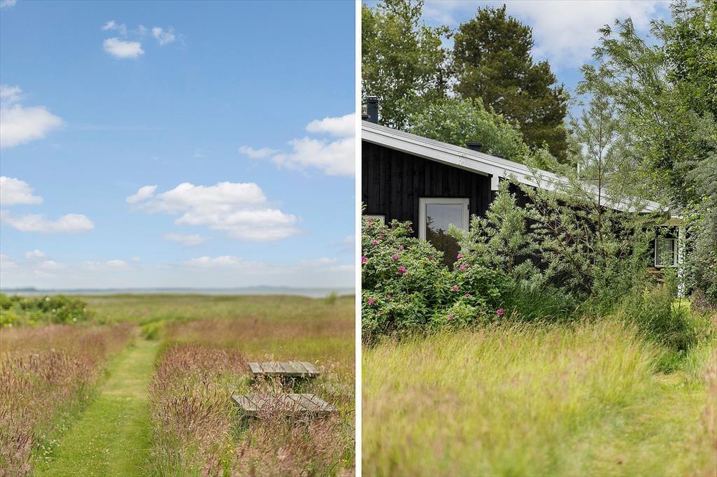 Sommerhusets sydvendte terrasse kan sikkert hurtigt blive din foretrukne opholdsplads, når vejret indbyder til udendørs hyggestunder. Takket være orienteringen er terrassen dejligt solrig, og hvis du kigger mod øst, har du havet lige i nærheden – med mindre du hellere vil lukke øjnene et øjeblik for at få en siesta i en god liggestol. Om aftenen har du mulighed for at forkæle din familie med et lækkert måltid tilberedt på grillen. Når maden er spist, og I har slået mave et øjeblik, er det måske tid til at spille vikingespil og lege med børnene på græsplænen, og alternativt kan I gå tur på strandengen i det begyndende tusmørke.