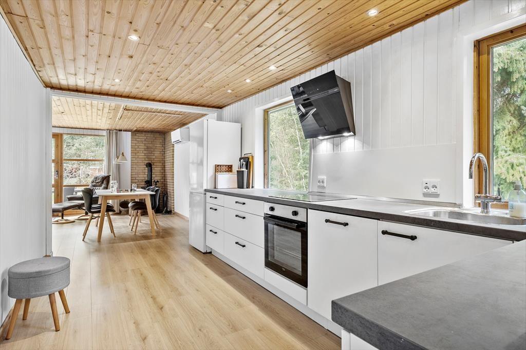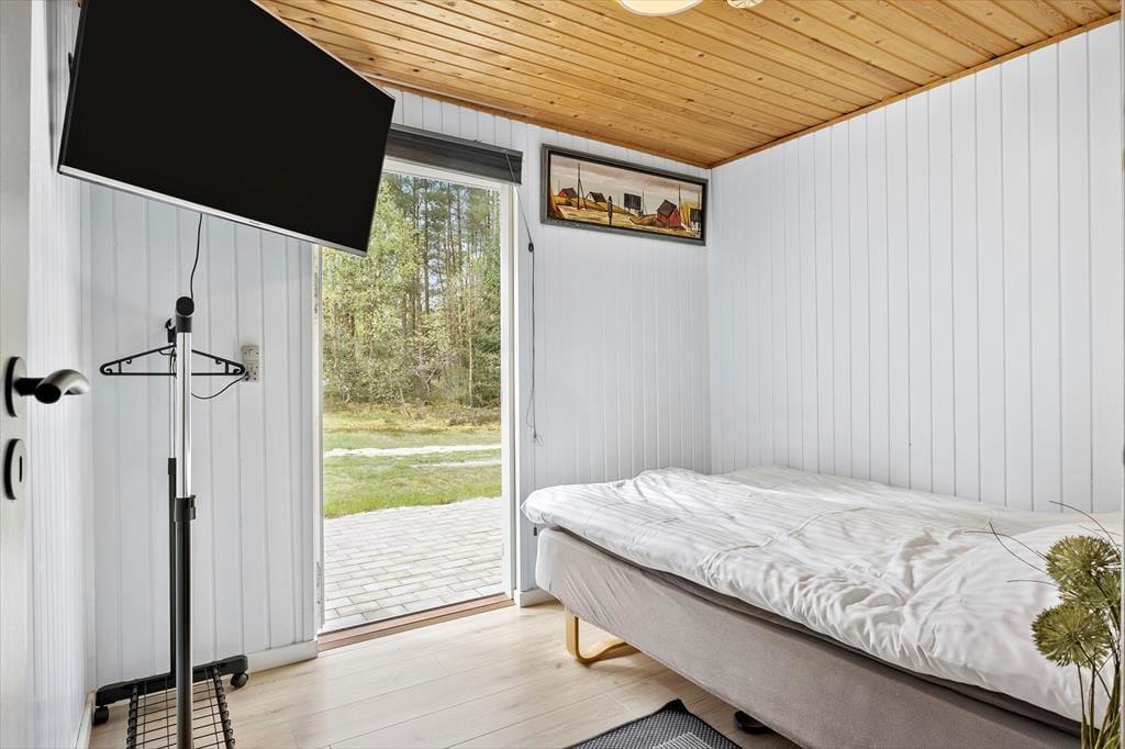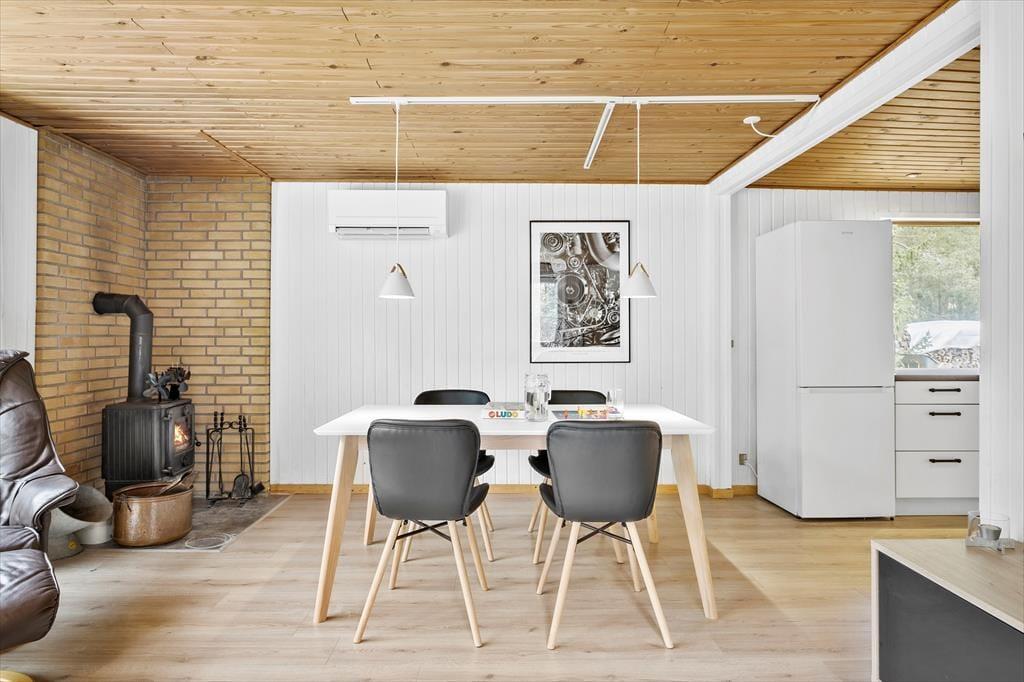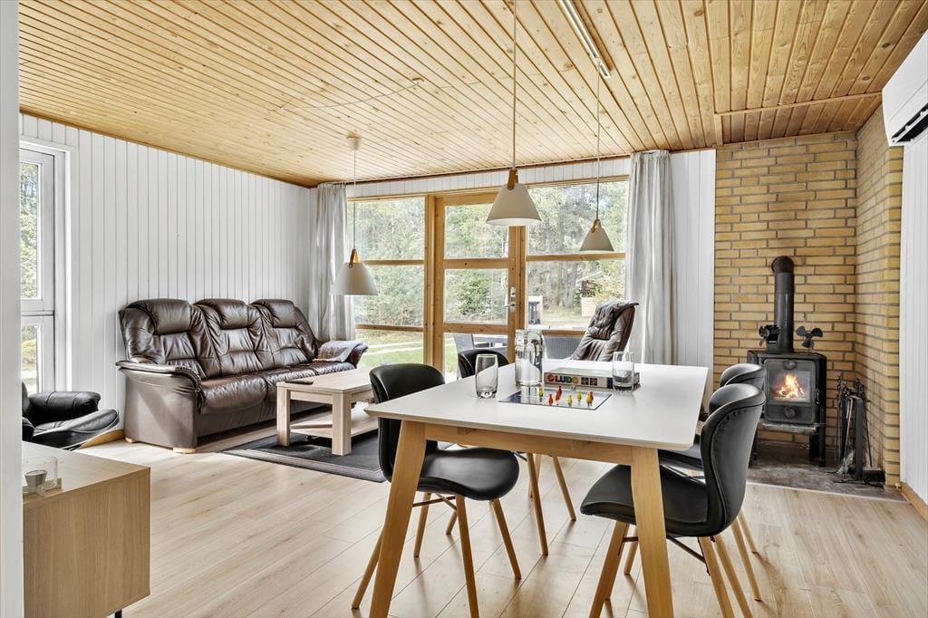 Sommerhuset har en pæn indretning og en hyggelig atmosfære, og kvadratmeterne er godt udnyttede, så det er muligt at være fire personer inden døre. To husdyr er for øvrigt også velkomne, hvis du vil have hunden eller hamsteren med på ferie – og uanset om du har fyldt huset op med familie eller venner, eller om dig og din bedre halvdel nyder stilheden sammen, kan du se frem til nogle rare stunder i de stemningsfulde rum. Så tænd op i brændeovnen, put en lasagne eller noget lækkert i ovnen, og sæt dig godt til rette i sofaen med en spændende bog eller en underholdende film på fladskærms-tv'et!
