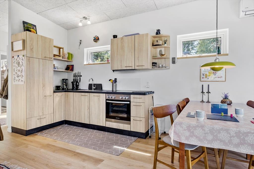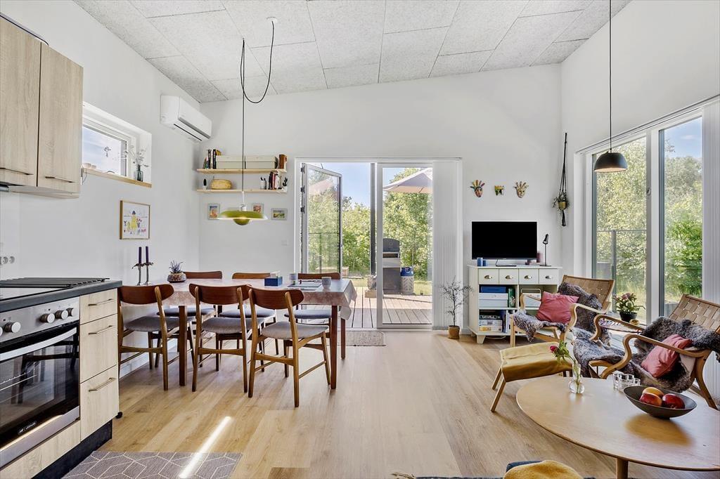 Så snart du træder ind i dette charmerende sommerhus, vil du mærke, hvordan hyggen omfavner dig. De små kvadratmeter er udnyttet optimalt med en praktisk og stilfuld indretning, som sikrer, at du og dine nærmeste kan føle jer hjemme med det samme. Sommerhuset er designet i en lys og luftig stil med små, fine detaljer, der giver en følelse af varme og komfort. Fra de bløde sofaer til de smukke trædetaljer – alt i dette hus inviterer til afslapning, nyder en god bog eller en hyggelig film med familien. Køkkenet er veludstyret og perfekt til at lave lækre feriemåltider, som kan nydes i den åbne stue, der kombinerer madlavning og samvær på bedste vis.
