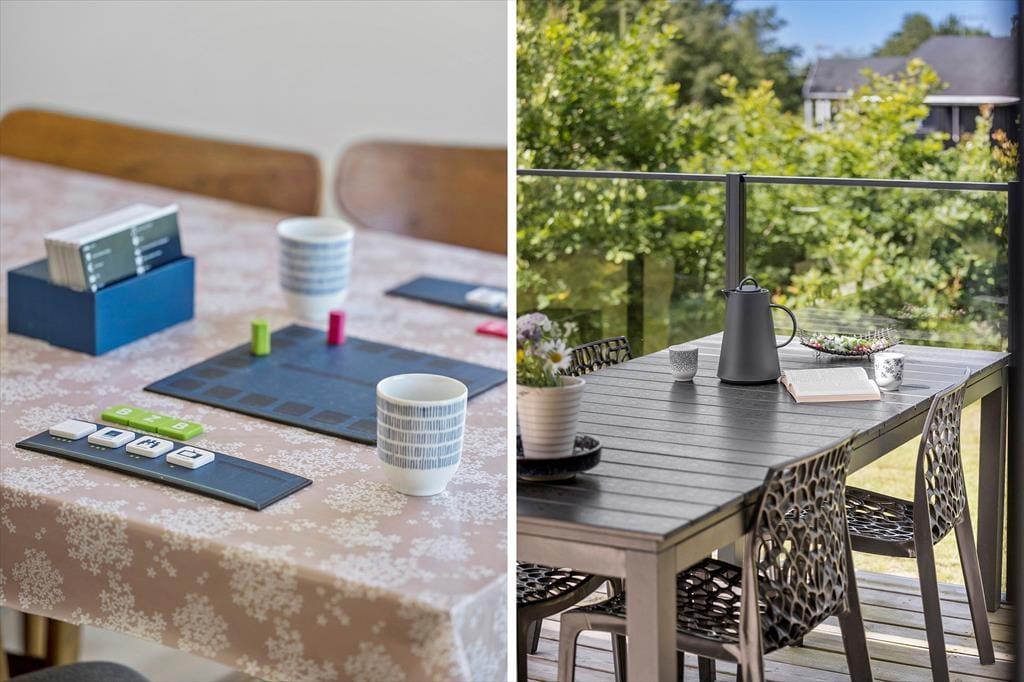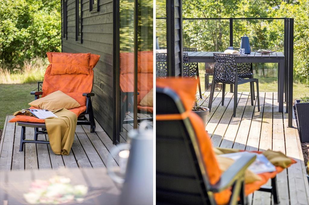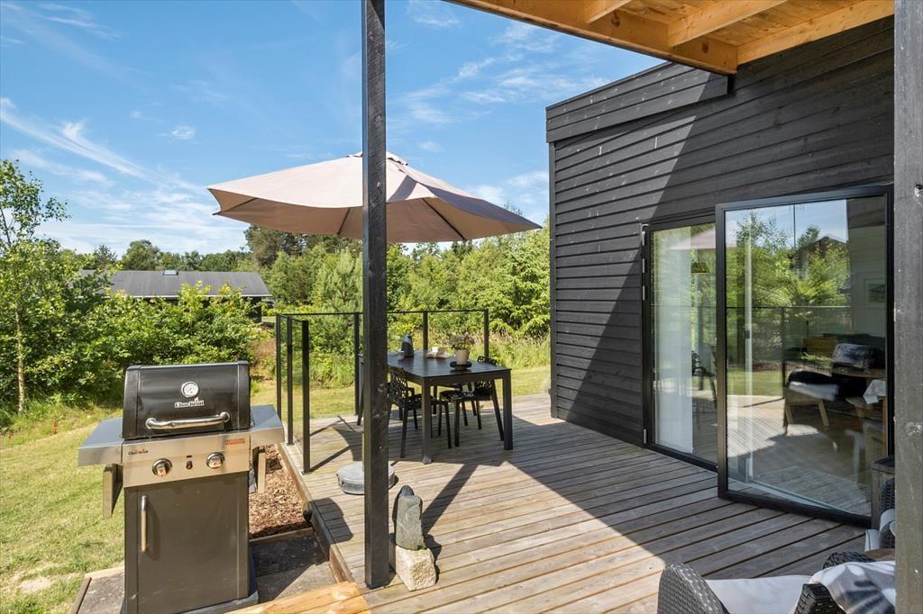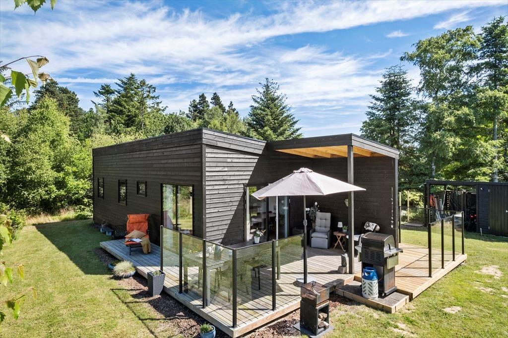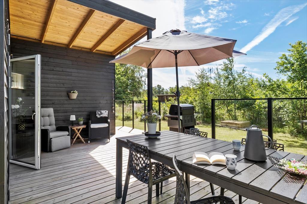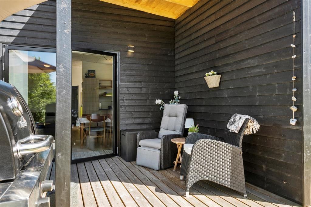 Når du træder ud på terrassen, mødes du af en stor naturgrund omkranset af skovlignende bevoksning, der skaber en privat og fredelig atmosfære. Terrassen er det perfekte sted at nyde en kop kaffe i morgensolen eller tilbringe aftenerne med grill og hygge under åben himmel. Den grønne have er et ideelt sted for børn at lege frit og sikkert. Solens gang sikrer, at du altid kan finde en solrig plet at slappe af på, og de mange små hyggekroge indbyder til afslappende stunder i det fri. Her kan du virkelig nyde livet og lade dagene flyde sammen i en harmonisk blanding af natur, ro og afslapning.